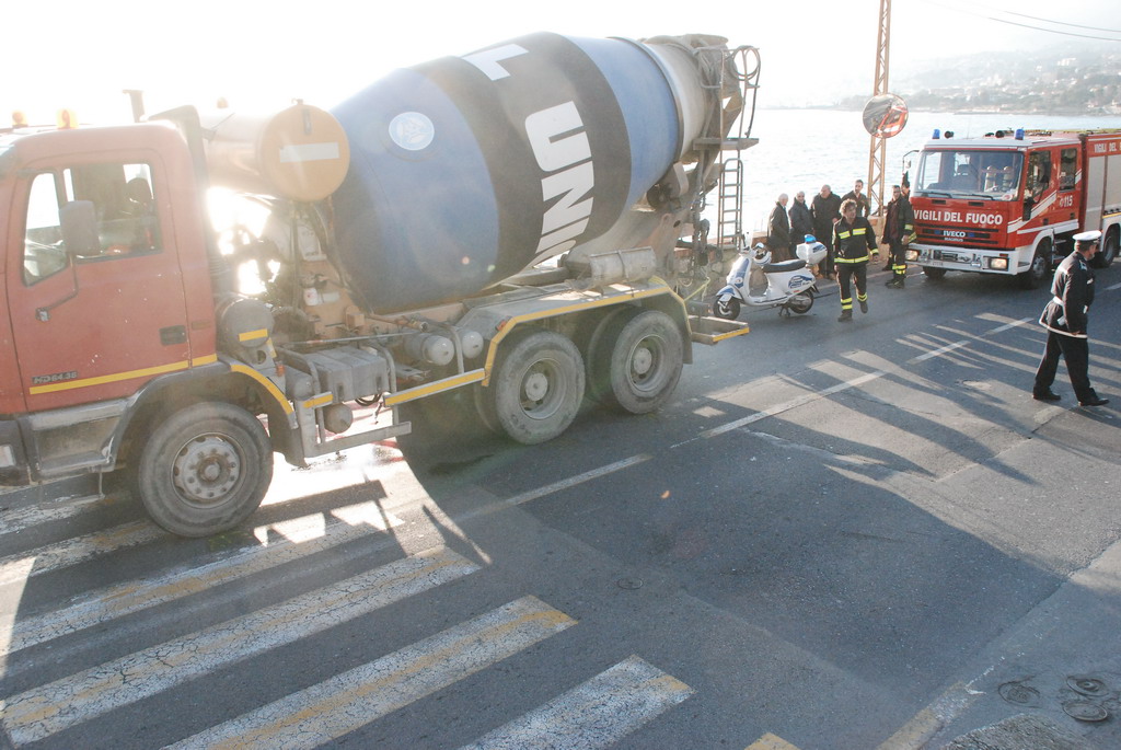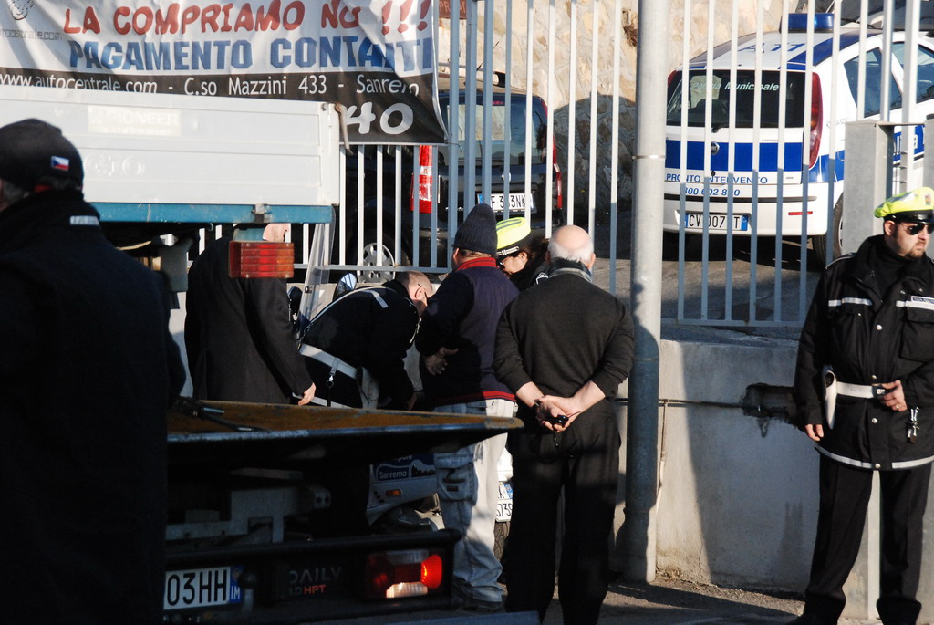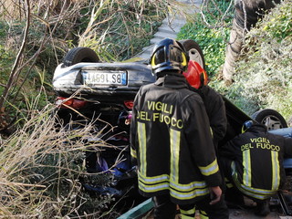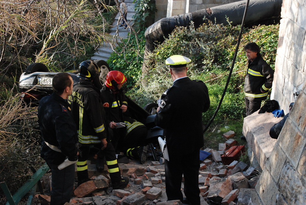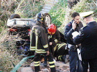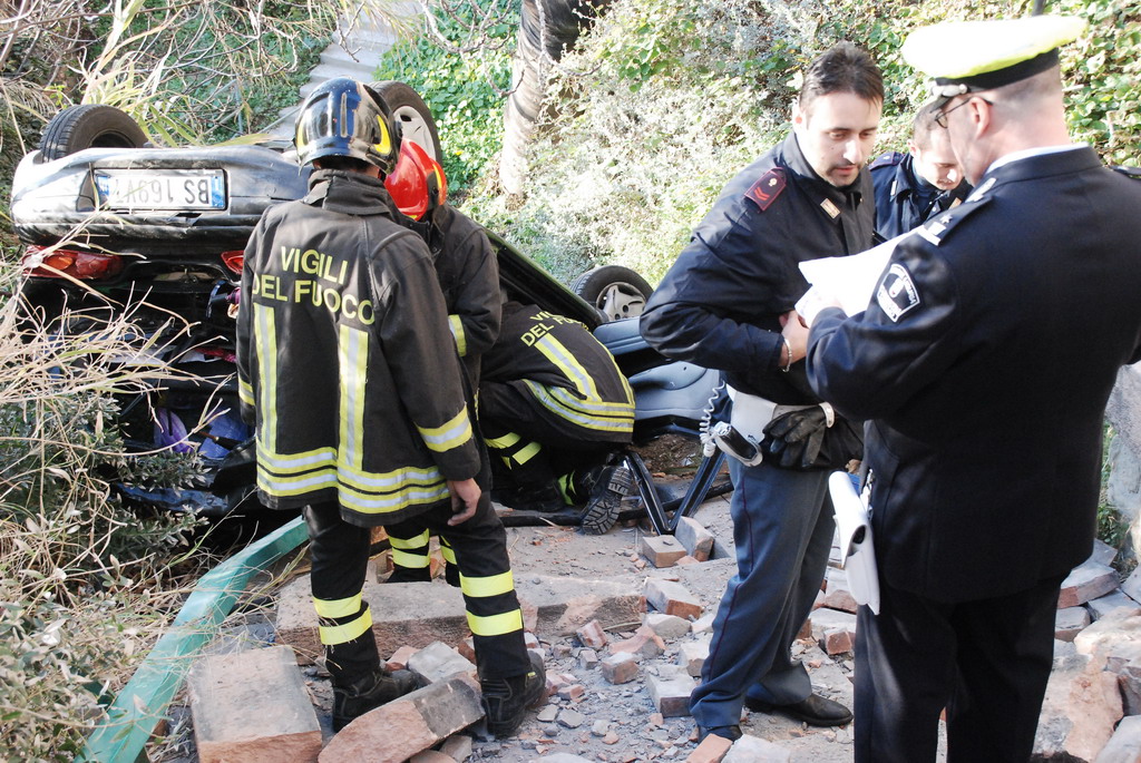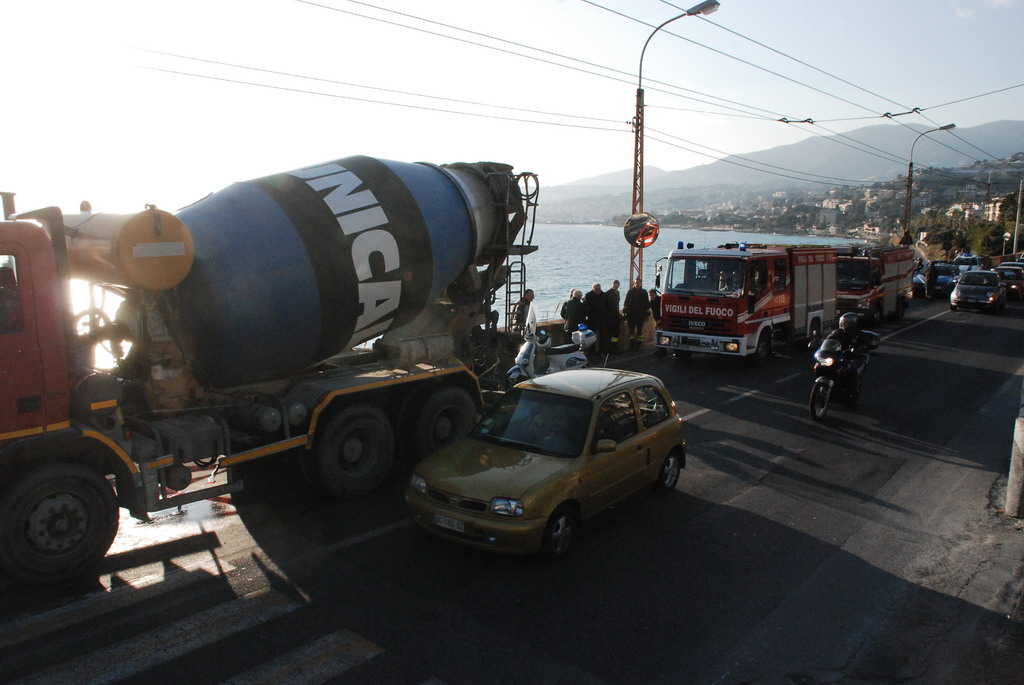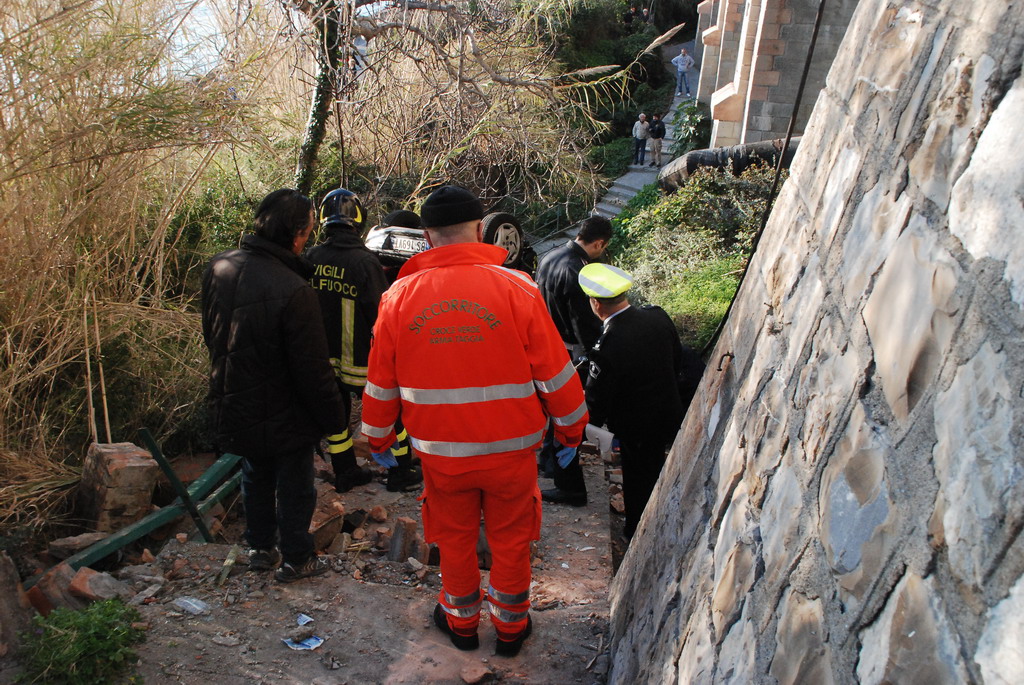 Sanremo: auto tamponata da una betoniera sfonda il muro e finisce nel sottostrada ai 'Tre Ponti'