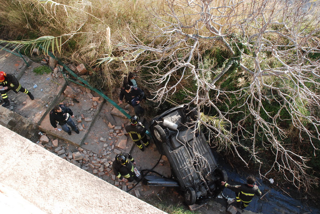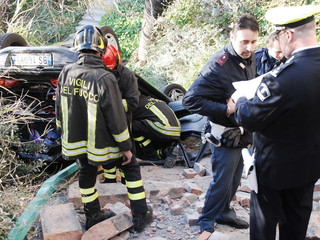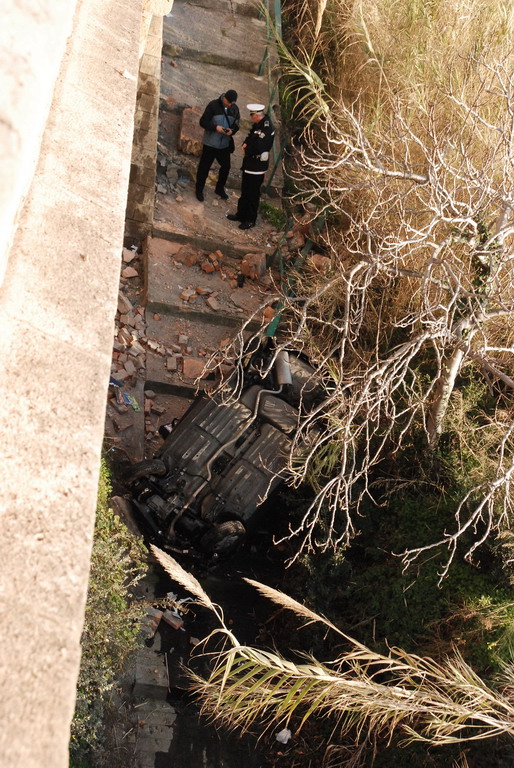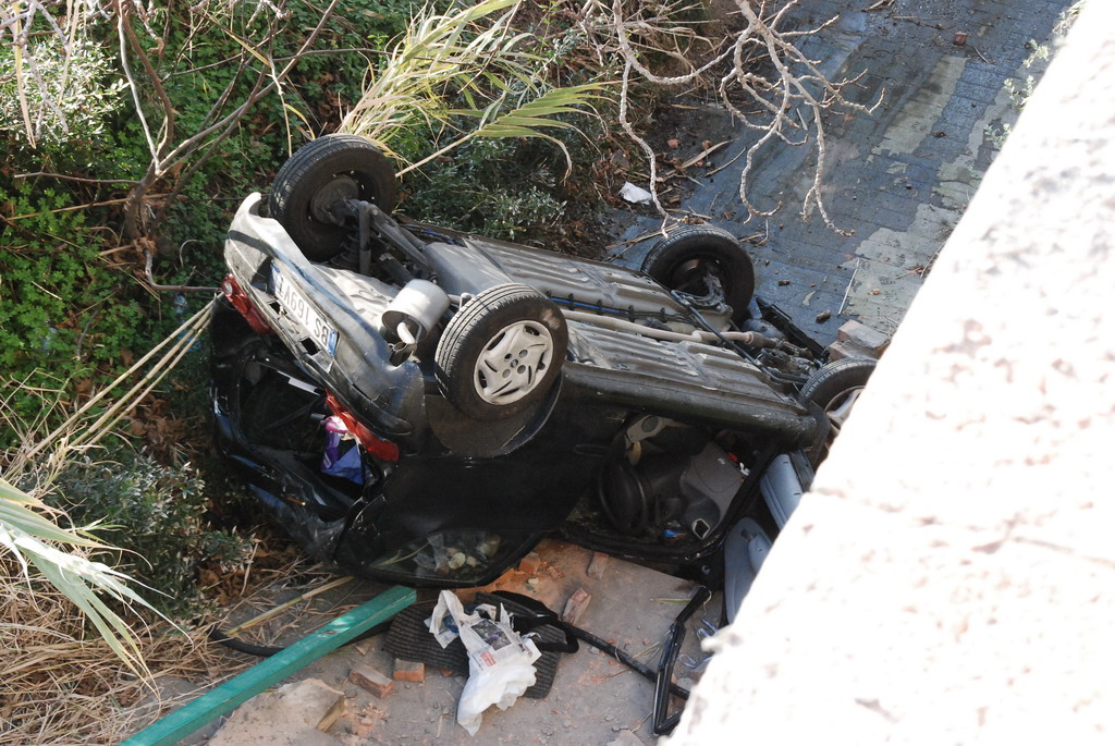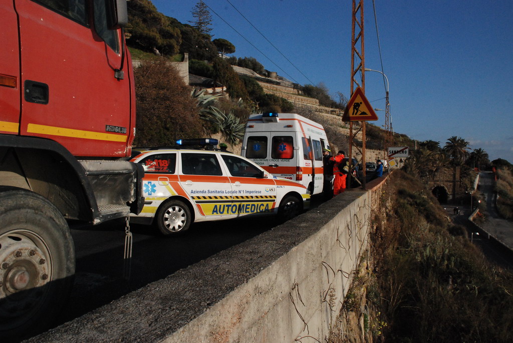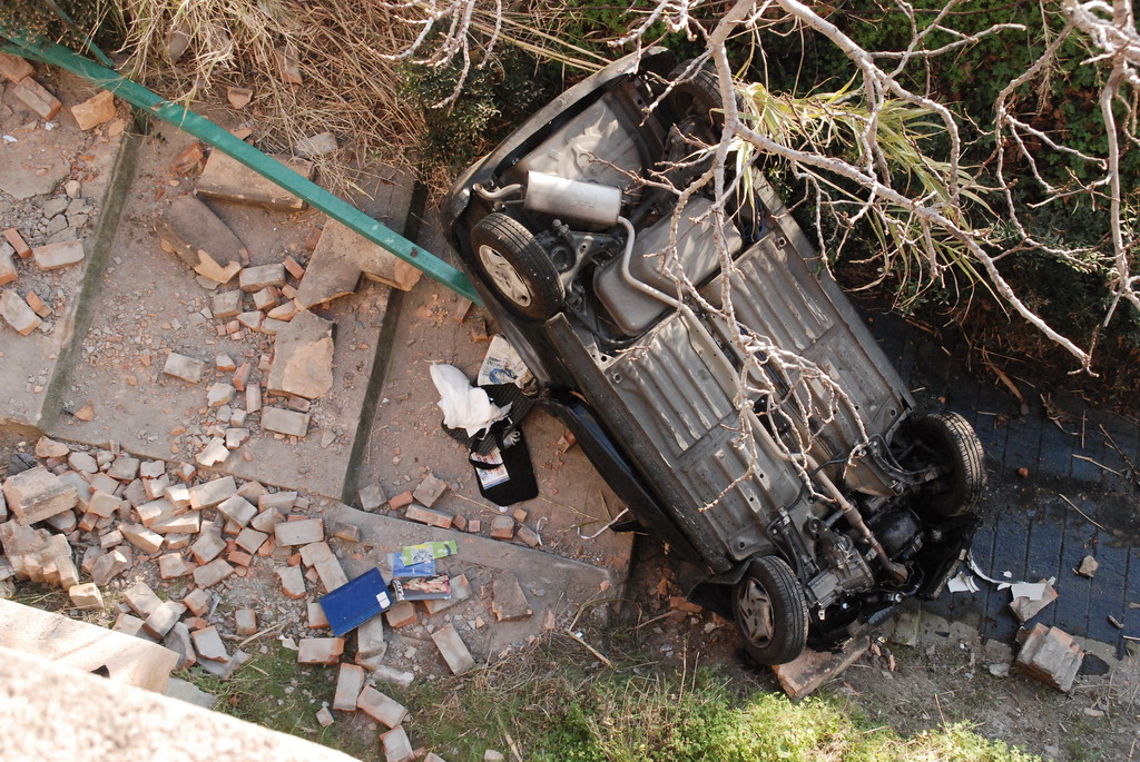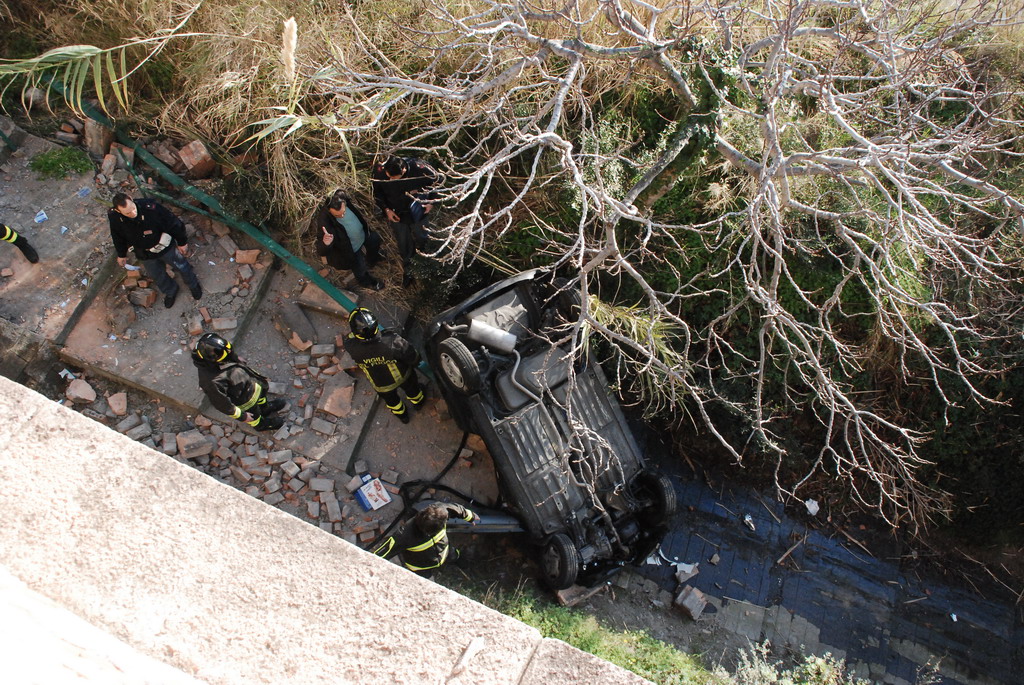 Sanremo: auto tamponata da una betoniera sfonda il muro e finisce nel sottostrada ai 'Tre Ponti'