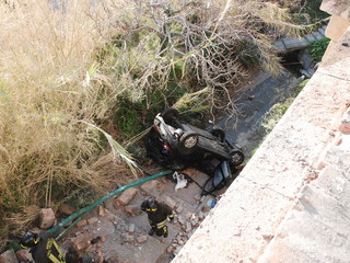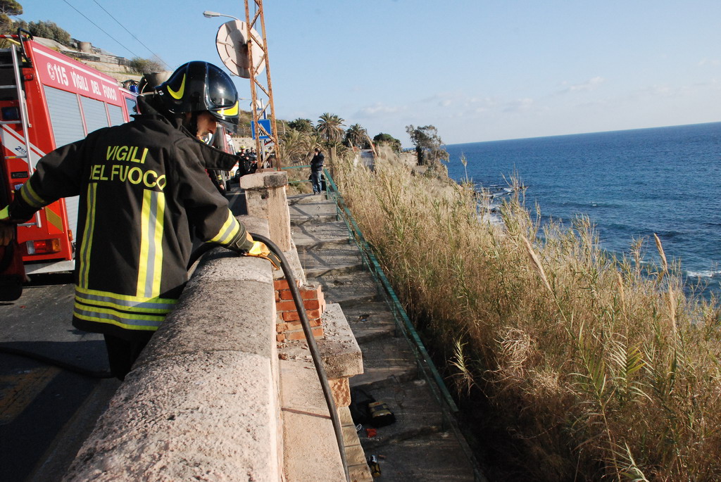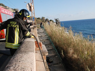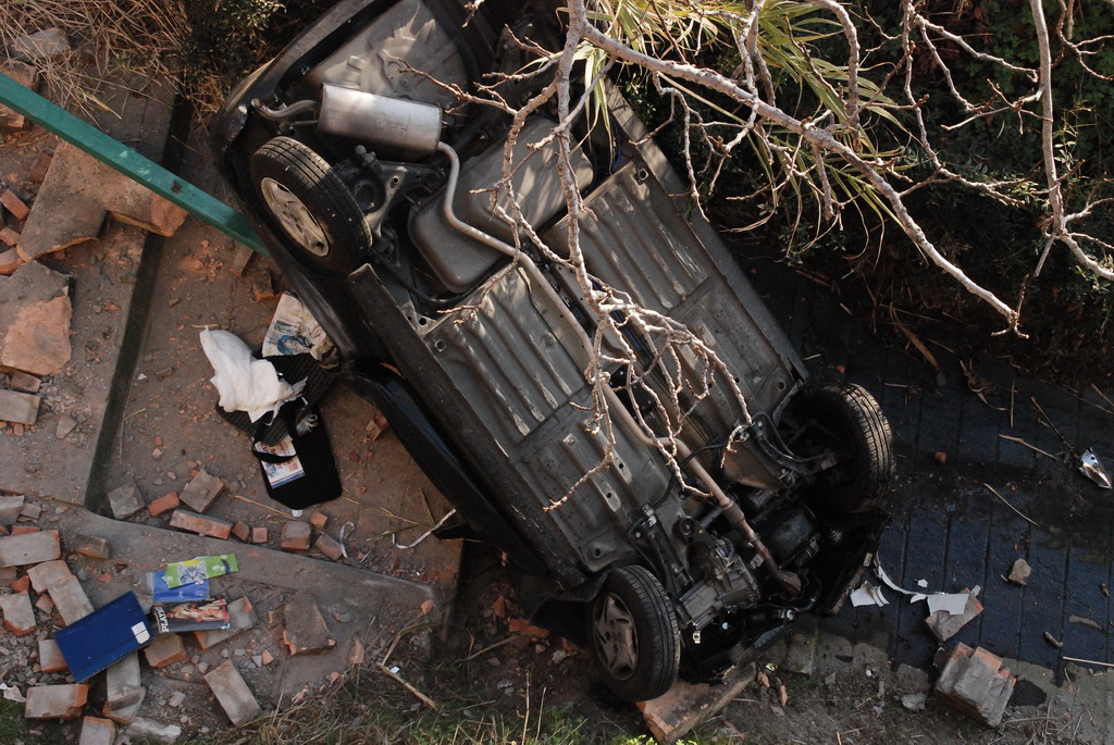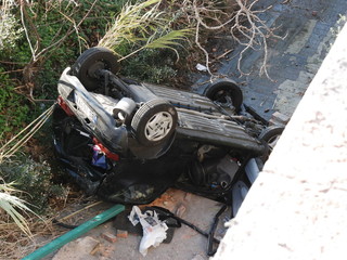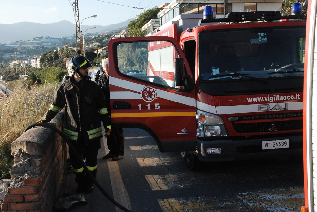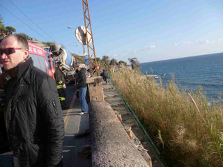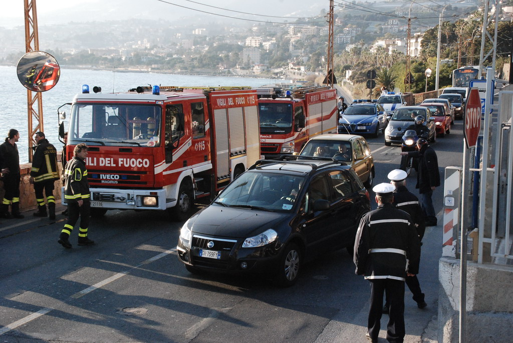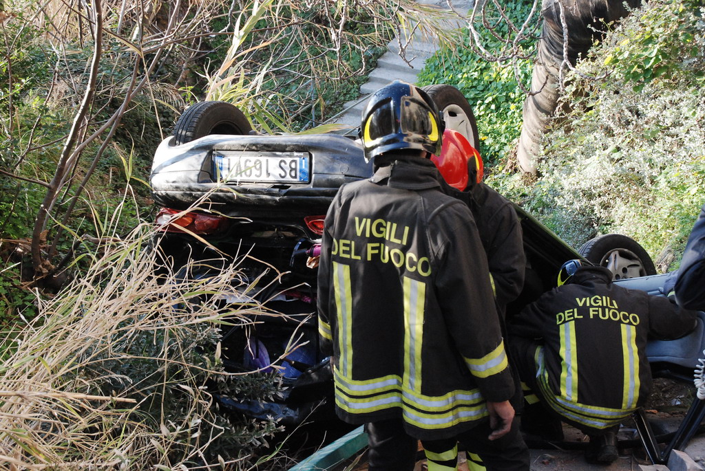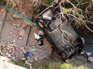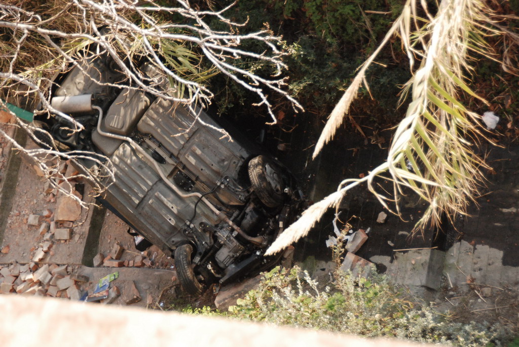 Sanremo: auto tamponata da una betoniera sfonda il muro e finisce nel sottostrada ai 'Tre Ponti'