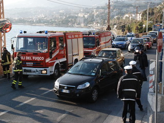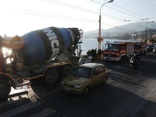 Salva per miracolo la conducente, trascinata per circa 50 metri. Circolazione intasata a levante della città.