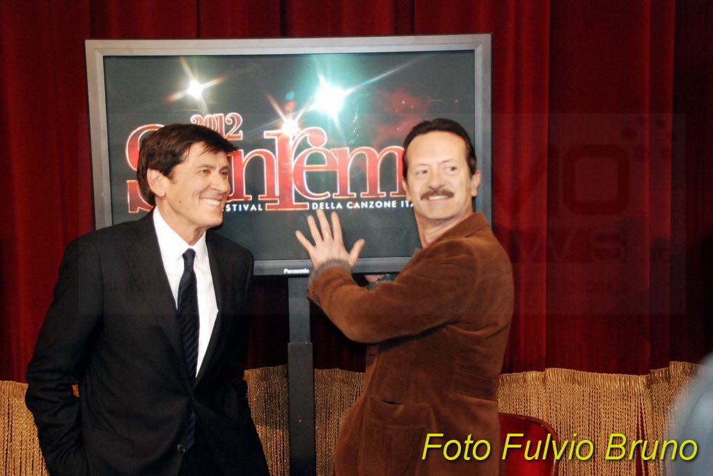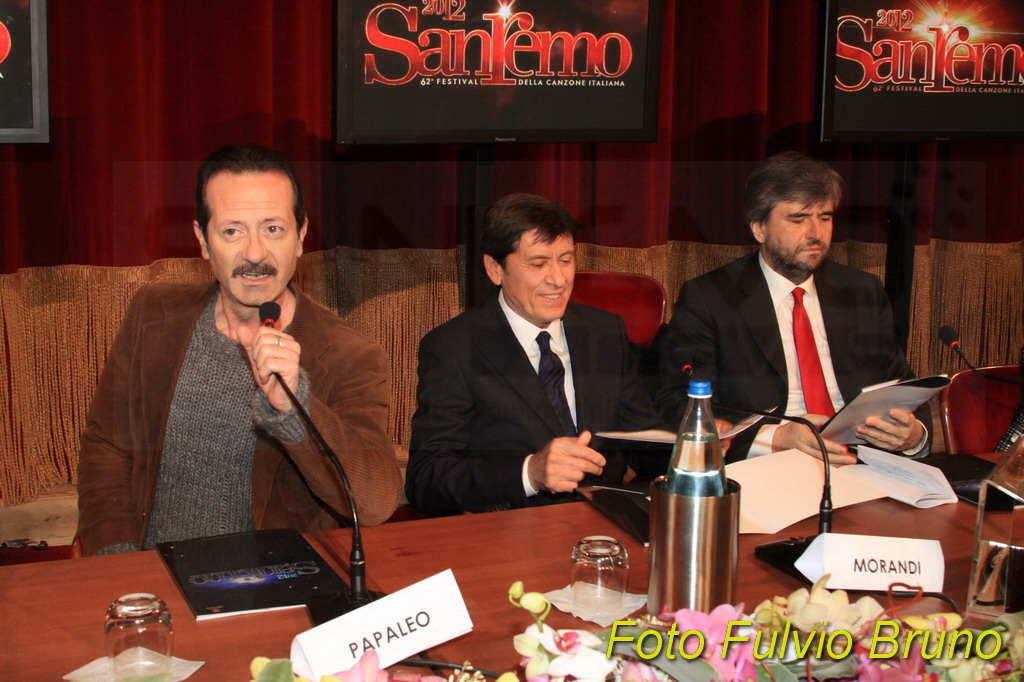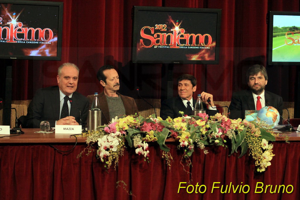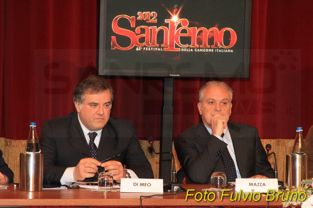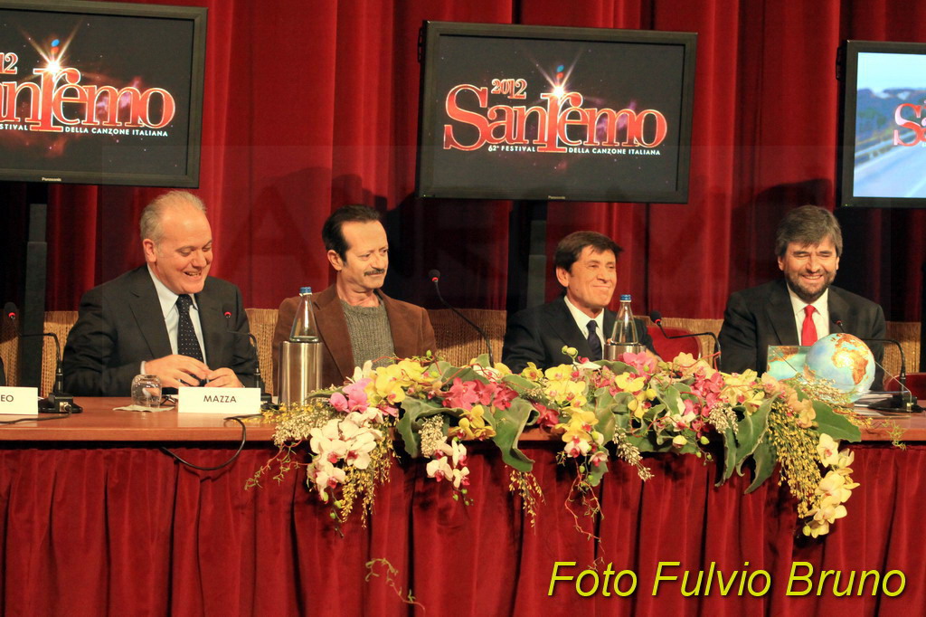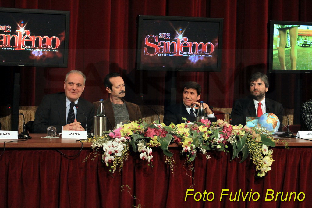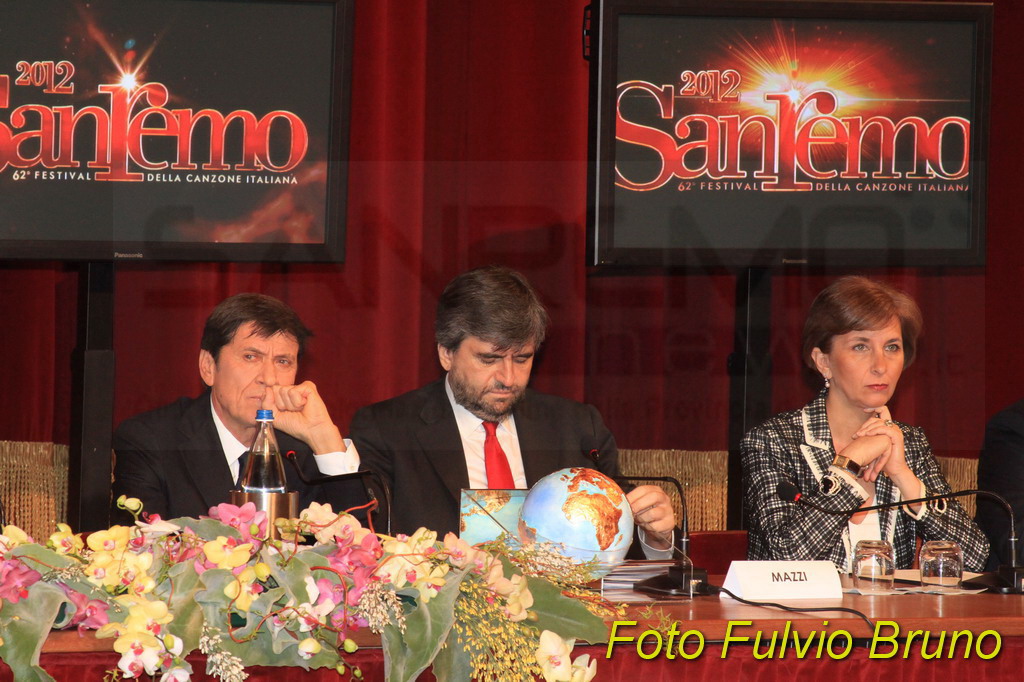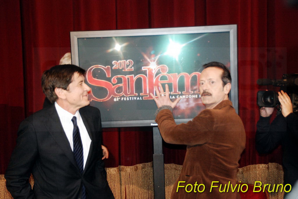 Si è svolta questa mattina, al Teatro del Casinò di Sanremo, la consueta conferenza di presentazione del Festival edizione 2012, in programma dal 14 al 18 febbraio. A fare gli onori, i due ‘padroni’ di casa di Sanremo 2012, Gianni Morandi e Rocco Papaleo. Assente, come avvenuto lo scorso anno per le due vallette Belen e la Canalis, la ‘signora’ del Festival di quest’anno, la modella ceca, Ivana Mrazova. Presente anche il direttore artistico Gianmarco Mazzi e il direttore di Rai 1 Mauro Mazza. Per il Comune matuziano il Vicesindaco Claudia Lolli e il Presidente di Cartasì Area Sanremo, Giorgio Giuffra.