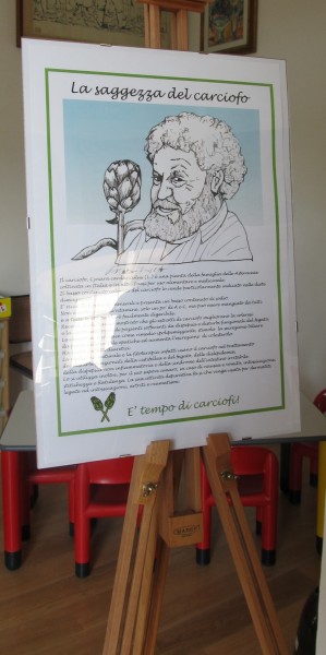La mostra, inserita nella terza edizione della manifestazione “E’ tempo di carciofi”, rappresenta una originale e divertente raccolta di curiosità, aforismi e aneddoti sul carciofo. I testi curati da Claudio Porchia ed impreziositi dalla matita ironica di Tiziano Riverso danno vita a 28 pannelli che rappresentano un viaggio alla scoperta di questo straordinario ortaggio. I visitatori potranno così scoprire che il carciofo si trova dappertutto: nella letteratura, grazie all’ode scritta da Pablo Neruda o alla metafora di Italo Calvino sul mondo, nella poesia come nella pittura e nell’arte. Il carciofo è presente nel cinema (“Il fantastico mondo di Amelie”) e nelle canzoni, (“i carciofi son maturi” delle Figlie del Vento) e la sua storia accompagna quella dell’uomo dalla mitologia ai tempi moderni, contro il cui logorio costituisce un efficace rimedio. Parlano di lui, Caterina de Medici, che li adorava fino a farne indigestione, e Vittorio Emanuele, che per primo persegue la “politica del carciofo”. La bellissima Marylin Monroe conquistò nel 1949 l’ambitissimo titolo di regina del carciofo che ogni anno viene assegnato oltreoceano, mentre per gli arabi è femmina e si chiama alcachofa, da cui prende il nome. E’ afrodisiaco, Isabel Allende lo inserisce in una eccitante ricetta, ispira fontane e palazzi. Libereso lo consiglia per le sue proprietà medicinali, ma in particolare è ottimo in cucina sia cotto che crudo, e la mostra chiude riportando alcune ricette dell’Artusi, ricche di dissertazioni e spunti interessanti.