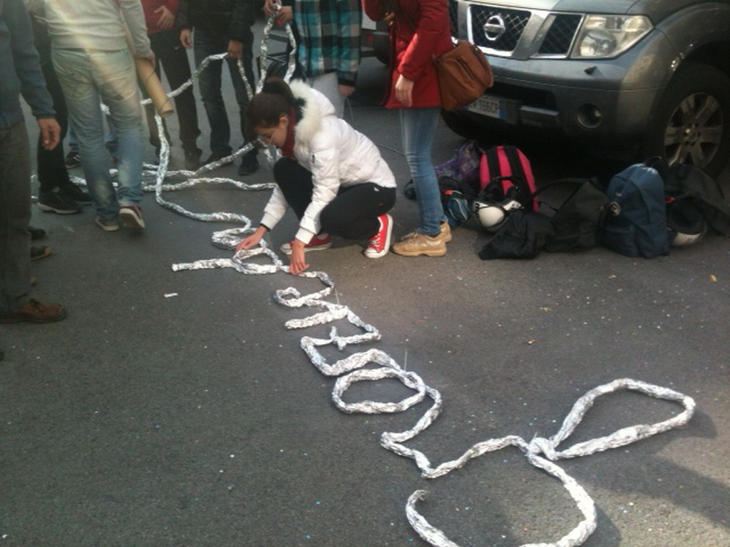 Oggi alle 18.30 in piazza San Costanzo a Sanremo ci sarà la proiezione pubblica del video realizzato dalle tre artiste per il progetto e nell'arco di tutta la giornata si accenderanno delle scintille non solo nel quartiere La Pigna ma anche nelle vie prossime all'Ariston: sanremesi che canteranno in strada la loro canzone, in una specie di sinfonia cittadina. Cittadellarte collabora da molti anni con uno dei più attivi dipartimenti didattici tra I centri museali europei. Si tratta del Dipartimento Educazione del Castello di Rivoli diretto da Anna Pironti. In questi anni la collaborazione con La Pigna Mon Amour si è estesa anche a questo soggetto. Oggi infatti si svolgerà anche un'intervento performance realizzato e ideato dal Dipartimento educazione Castello di Rivoli, dal titolo “ Grazie dei fiori, grazie dei fiori bis”. Lunghi cordoni di alluminio (fornito da CIAL, consorzio imballaggi alluminio) srotolati lungo le strade che dall'Ariston portano a La Pigna saranno utilizzati per scrivere parole ispirate ai titoli delle canzoni di Sanremo.