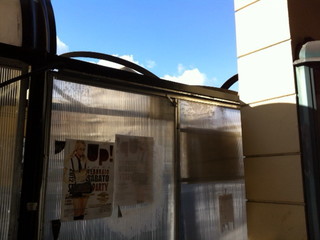 "In piazza Dante ad Imperia, lato via Don Abbo, da qualche tempo (Dicembre 2011) esiste una situazione di disagio e nello stesso tempo pericolosa in quanto la pensilina di attesa dei bus e stata urtata da qualche mezzo pesante ed oltre a mancarci parzialmente il soffitto (il plexiglas a causa dell'urto si e spaccato rimanendo pericoloso.Successivamente lo stesso plexiglass è stato rimosso e messo in sicurezza dai Vigili del Fuoco dopo. La stabilita di questa struttura attualmente non è nelle migliori condizioni in quanto oltre ad essere tutta storta c'è il palo centrale sollevato dal marciapiede ed appoggiato alla bene e meglio.