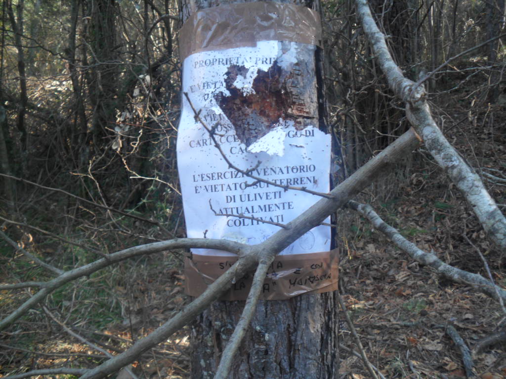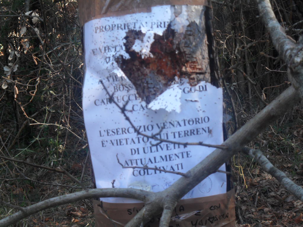 "Oggi dopo il grande freddo e la neve che ormai si è sciolta sono andata nei boschi vicino a casa e ho avuto la sorpresa che comunque mi aspettavo! Sono tornata indietro per prendere la macchina fotografica per documentare e rendere pubblico lo scempio che poche persone riescono a fare in pochi metri di bosco per il loro comportamento che definire incivile è poco! Ho incontrato bossoli di cartucce abbandonati ovunque, spazzattura di ogni tipo, alberi e arbusti tagliati per costruire gli appostamenti, porte di casolari sfondate, recinzioni divelte e cartelli affissi ad alberi lettteralmente impallinati! Se tutto questo è presente in pochi metri quadrati di bosco, non posso pensare cosa ci può essere in tutti quei boschi d'Italia, frequentati da questi signori al termine della stagione venatoria! Questa è una brutta situazione che ci deve far riflettere , questo io lo definisco un atto di prepotenza e non deve più verificarsi!"