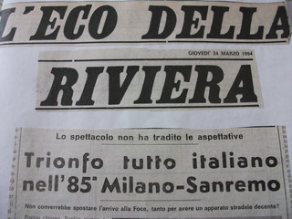 Lo scriveva quasi vent'anni fa, il 24 marzo 1994, un giovane cronista dal nome Federico Marchi (!!!) sullo storico Eco della Riviera. Passano gli anni ma evidentemente le cose non sono poi tanto cambiate. Anche quest'anno infatti, in occasione della corsa ciclistica Milano-Sanremo, il Comune della città dei fiori ha provveduto a far eseguire lavori di asfaltatura nelle strade cittadine toccate dalla ‘Classicissima’ di primavera.