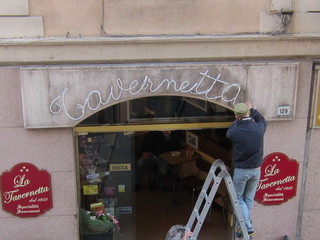 Torna a splendere una delle storiche insegne dei negozi di via Palazzo. Stiamo parlando della Tavernetta, una vera e propria colonna della tradizione culinaria ligure, che possiamo vantarci di avere a Sanremo. Da dicembre infatti sull'insegna a neon purtroppo erano ben visibili gli acciacchi del tempo, lettere mancanti prima e sillabe dopo. Tutto fino a quando non è stata decisa la rimozione prima che cadesse ancora qualche pezzo.