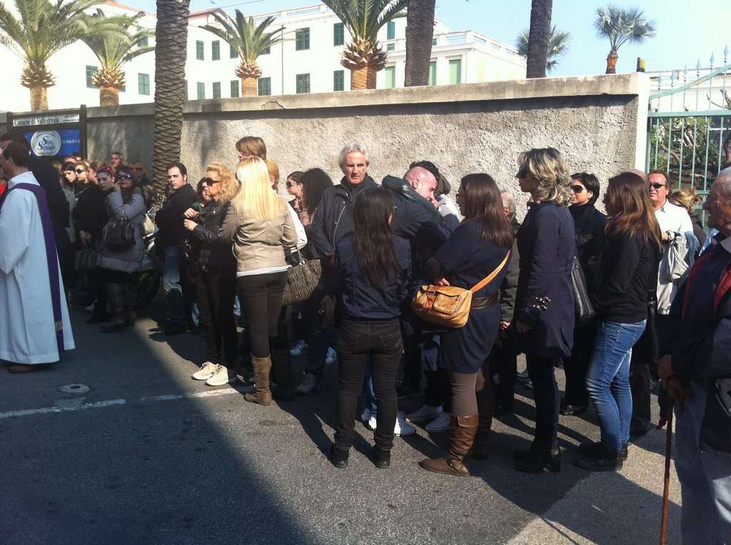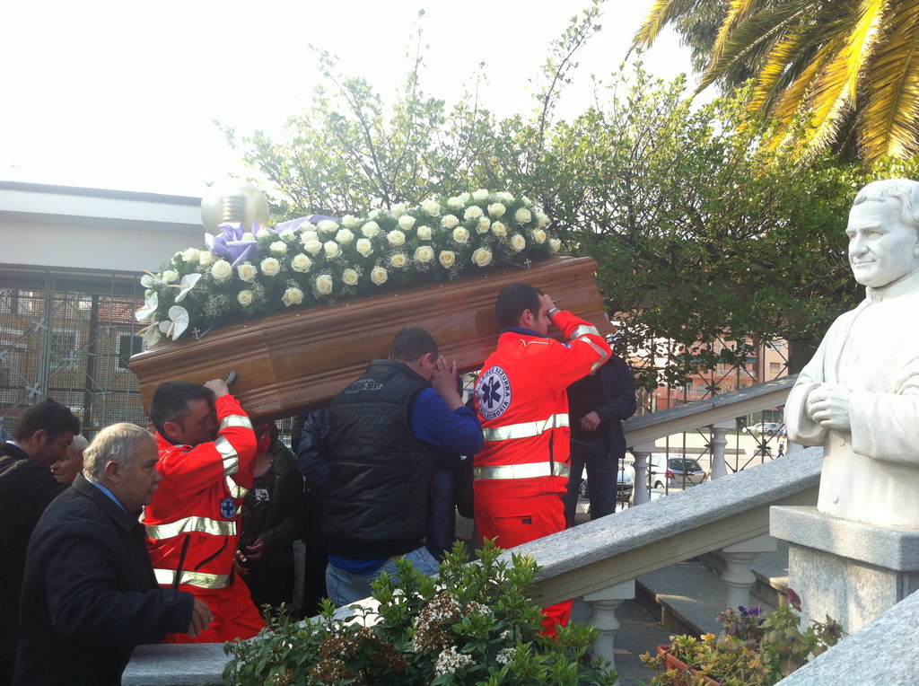 In lacrime amici, parenti, compagni di scuola. I militi della Croce Azzurra, molto legati alla giovane, hanno trasportato in chiesa il feretro della 20enne.