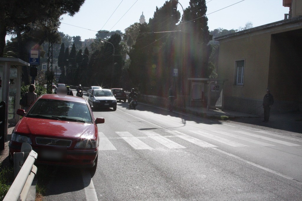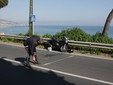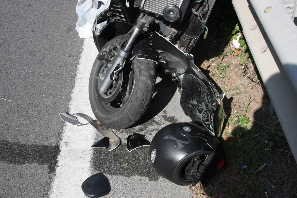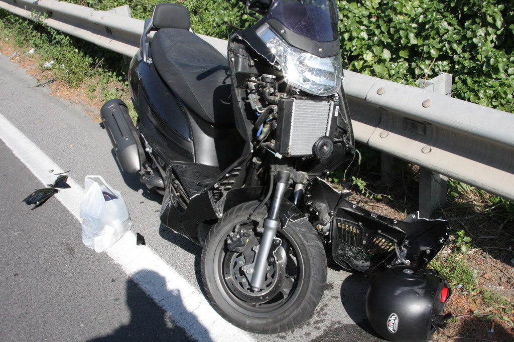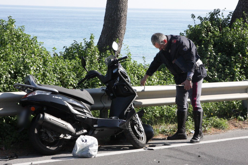Incidente intorno alle ore 16 in via Aurelia Ponente all'altezza di Villa Spinola a Bussana di Sanremo. Un motorino, un Kymko Dink,