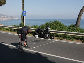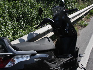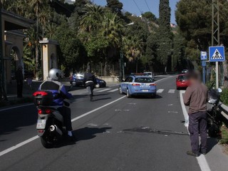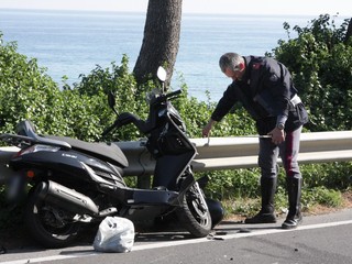Incidente intorno alle ore 16 in via Aurelia Ponente all'altezza di Villa Spinola a Bussana di Sanremo. Un motorino, un Kymko Dink,