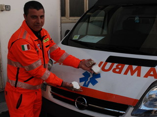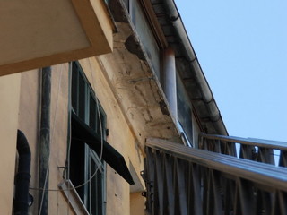 Sanremo: cornicione cade su un'ambulanza di Sanremo Soccorso, altri cornicioni pericolanti in via Goethe