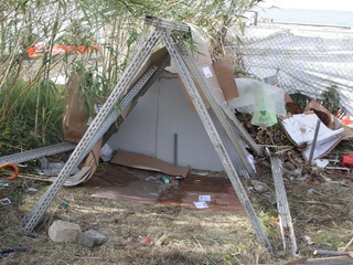 Nuova situazione di degrado in zona La Vesca a Sanremo. Sei persone di nazionalità romena avevano eletto a proprio domicilio un piccolo terrapieno tra un'area cantiere e la pista ciclabile a ridosso dell'Aurelia. Un vero e proprio rifugio con teli