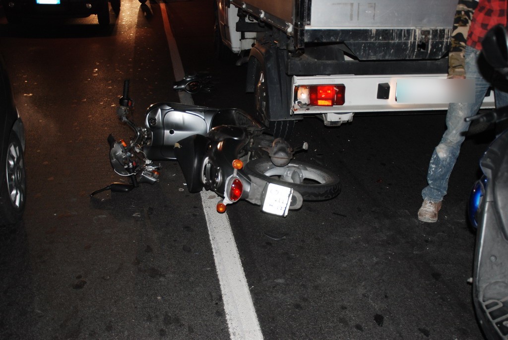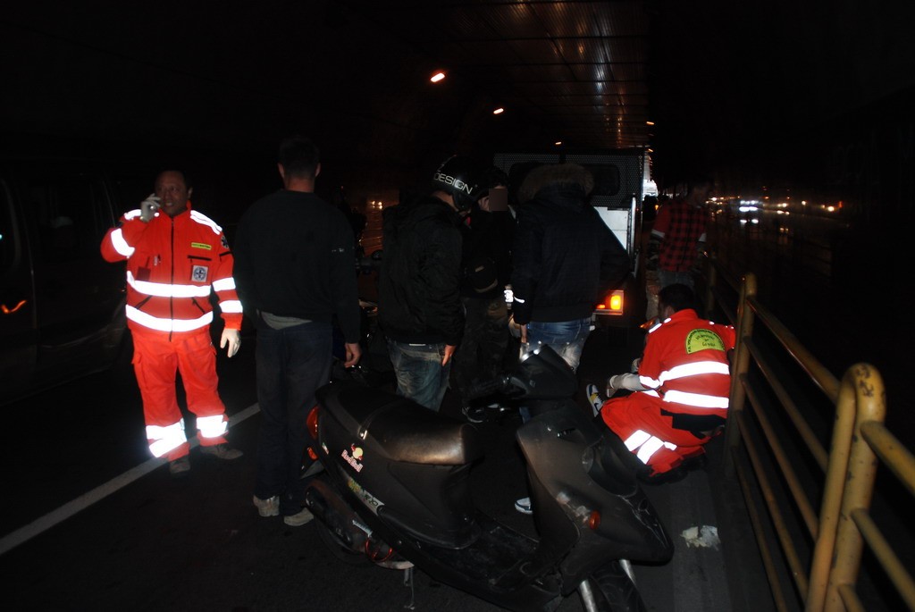 Lieve incidente stradale, questa sera intorno alle 18.45 all'interno della galleria Francia di Sanremo. Un giovane a bordo di uno scooter 50 è finito contro un camioncino, forse durante un sorpasso.