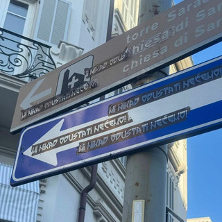 Ospedaletti, il Comune interviene per rimuovere adesivi su cartelli e frecce direzionali in via Roma