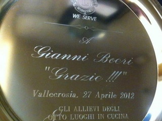 Si ringraziano gli allievi dell’Istituto Alberghiero di Arma di Taggia, Daniele Berro e Sascha Cebotariov per il servizio ai tavoli, e Rodolfo Costagliola di Polidoro per la preparazione dell’ottimo dessert. Durante la serata, è stata consegnato un piatto ricordo al prof. Boeri per ringraziarlo della sua simpatia e disponibilità. A fine cena, si è anche svolta una piccola lotteria; in palio alcune piantine aromatiche e prodotti della linea Sapori e Dintorni Conad. Il ricavato della lotteria e della serata permetterà l’acquisto di un bel video proiettore per i ragazzi dell’Istituto Don Bosco.
