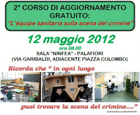 Si svolge sabato prossimo all8, presso la Sala Ninfea del Palafiori di Sanremo, il 2° convegno su ‘L’èquipe sanitaria sulla scena del crimine’. L’incontro è organizzato dalla Croce Verde di Arma di Taggia, in collaborazione con la Sanremo Promotion, il Cespim e l’Asl n° imperiese.