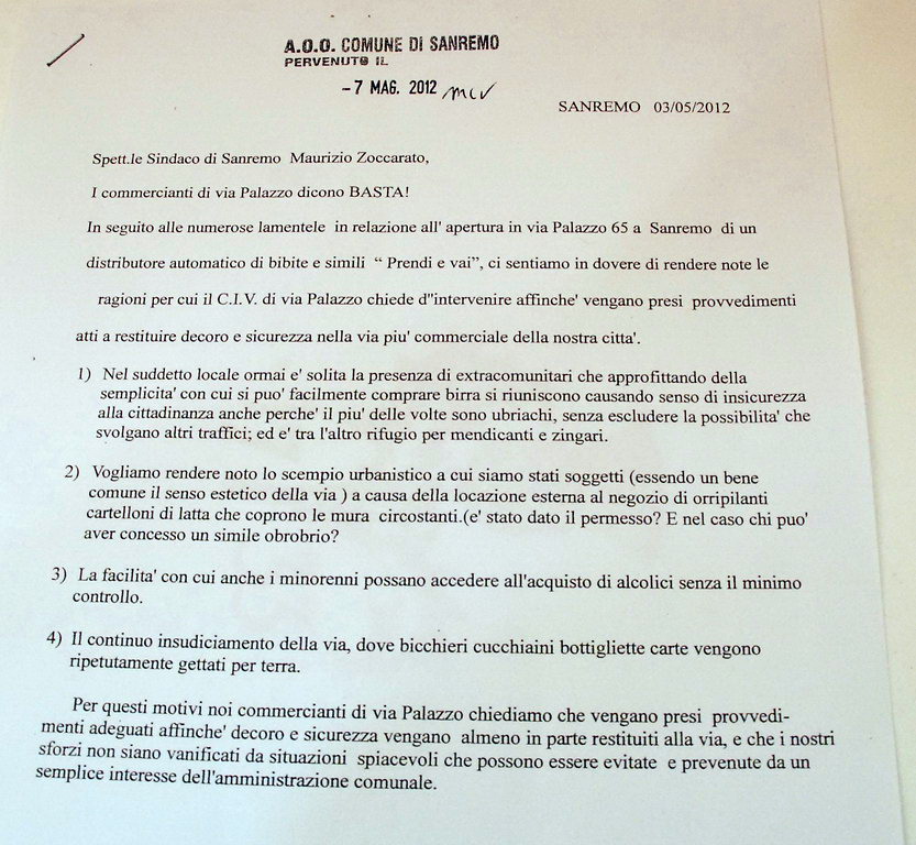 Sanremo: malviventi frequentano i distributori automatici in via Palazzo, proteste di commercianti e residenti