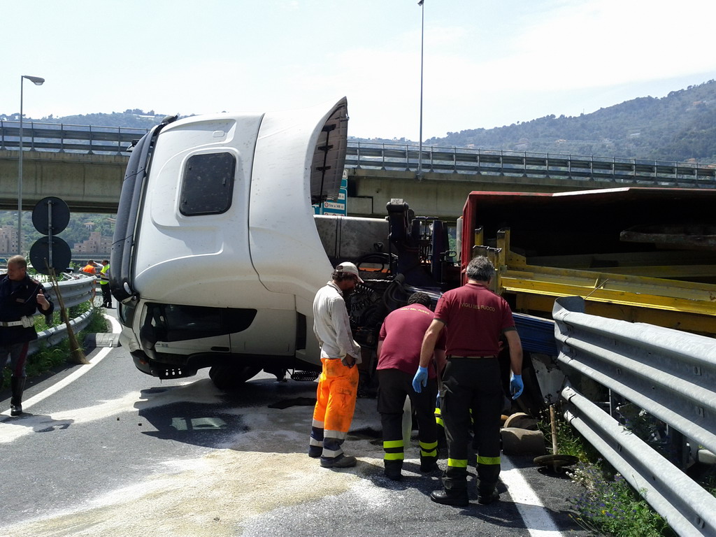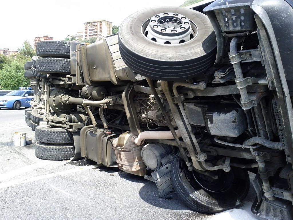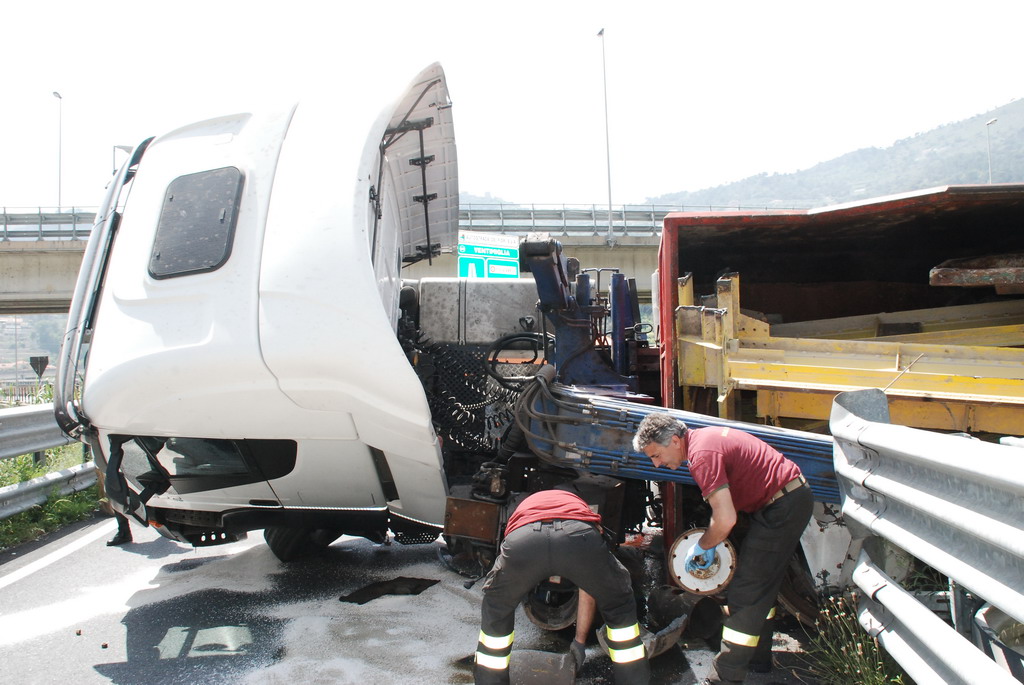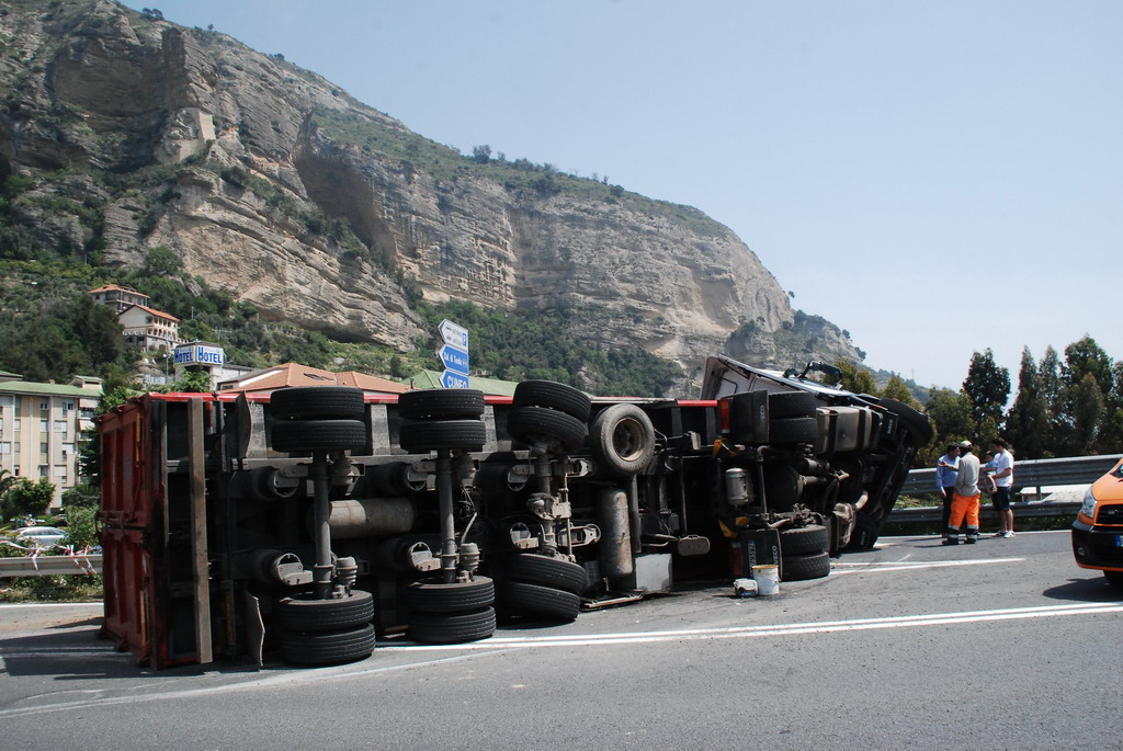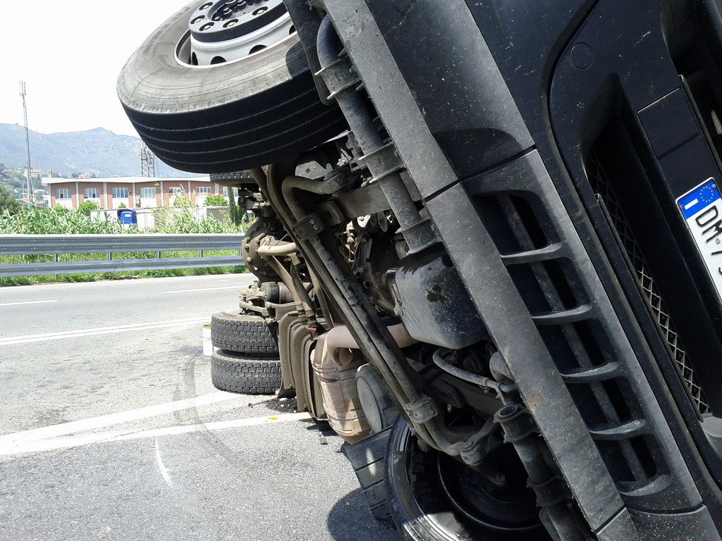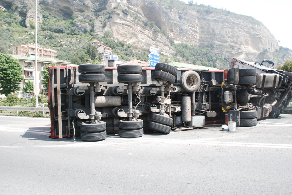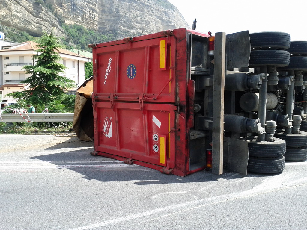 Un tir si è ribaltato intorno alle ore 13.30 a