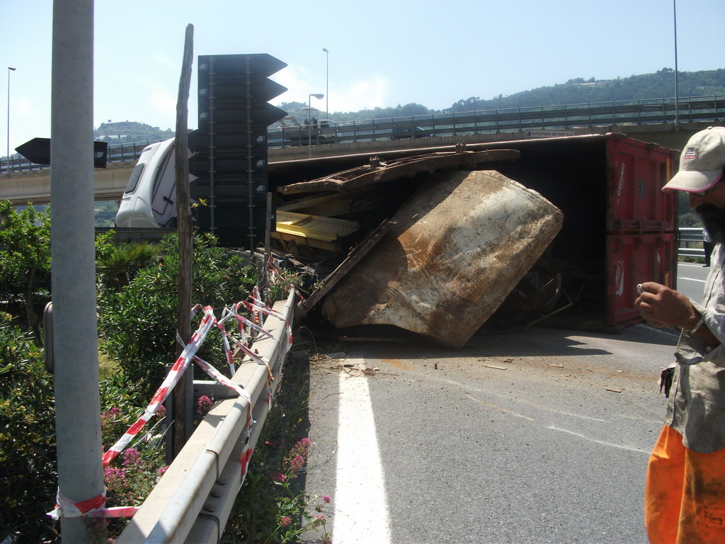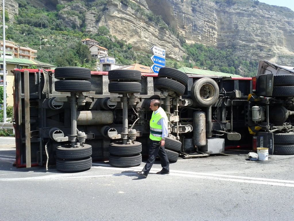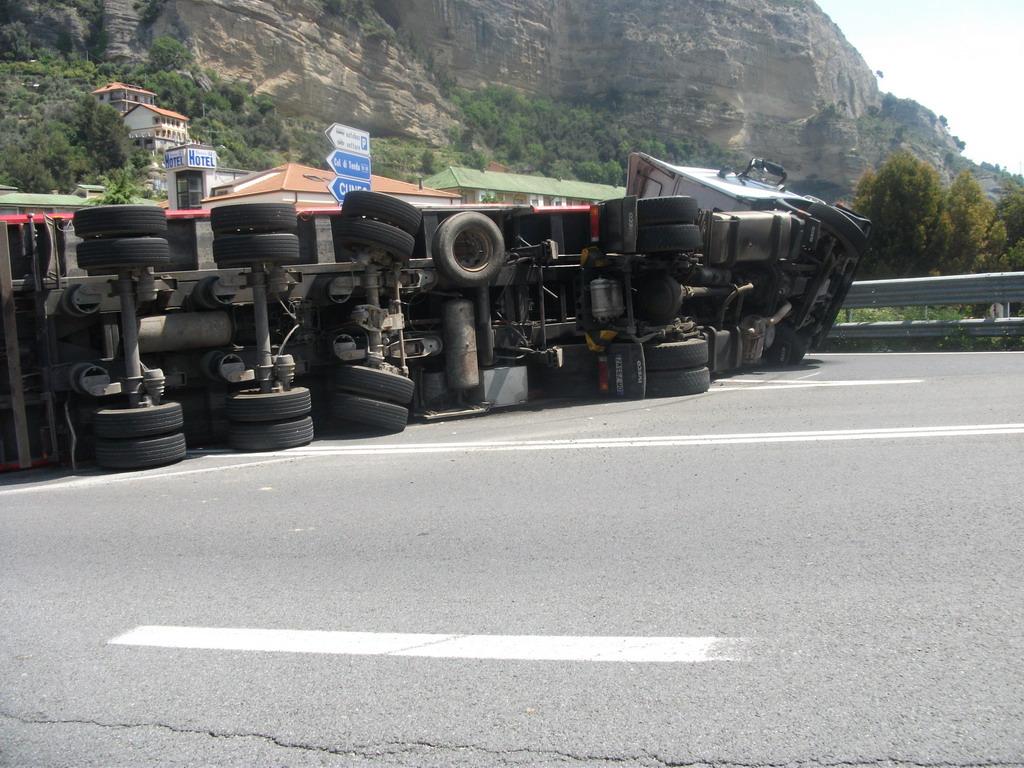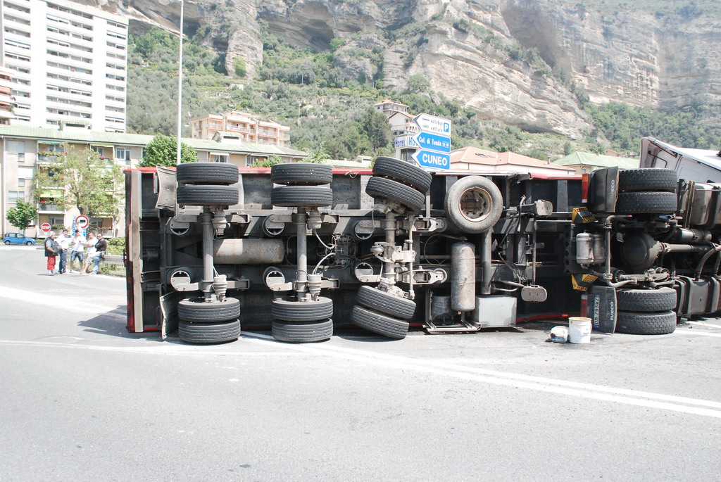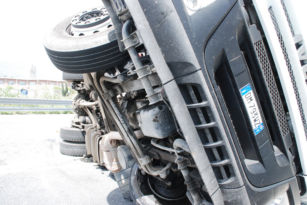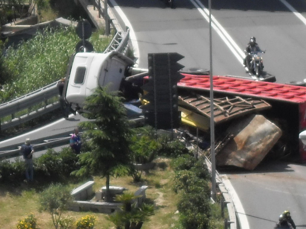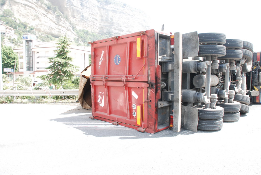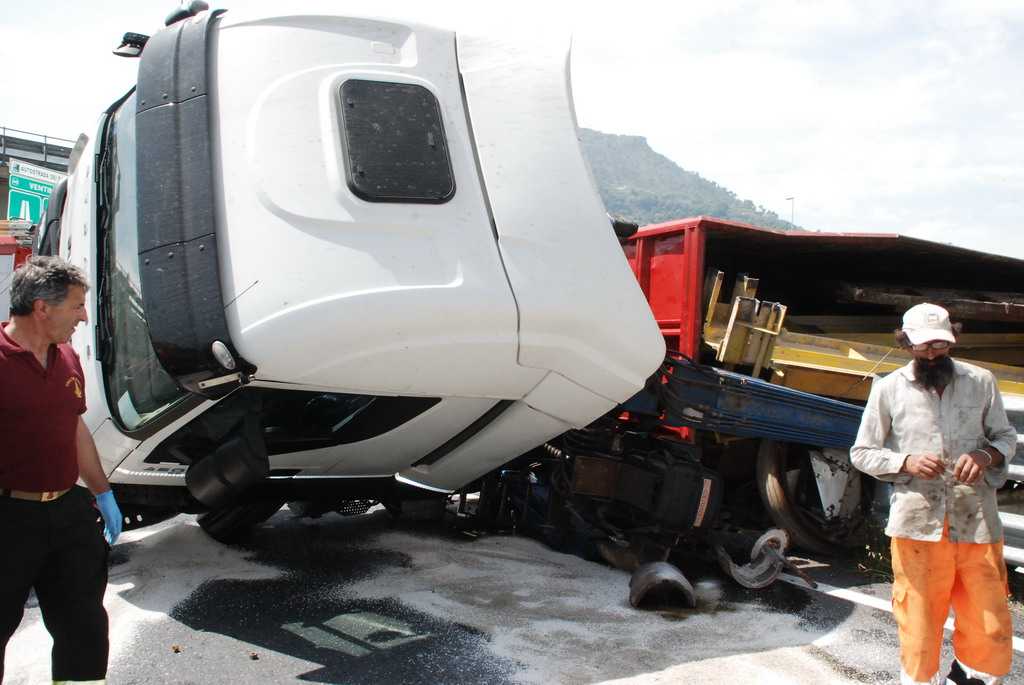 Un tir si è ribaltato intorno alle ore 13.30 a