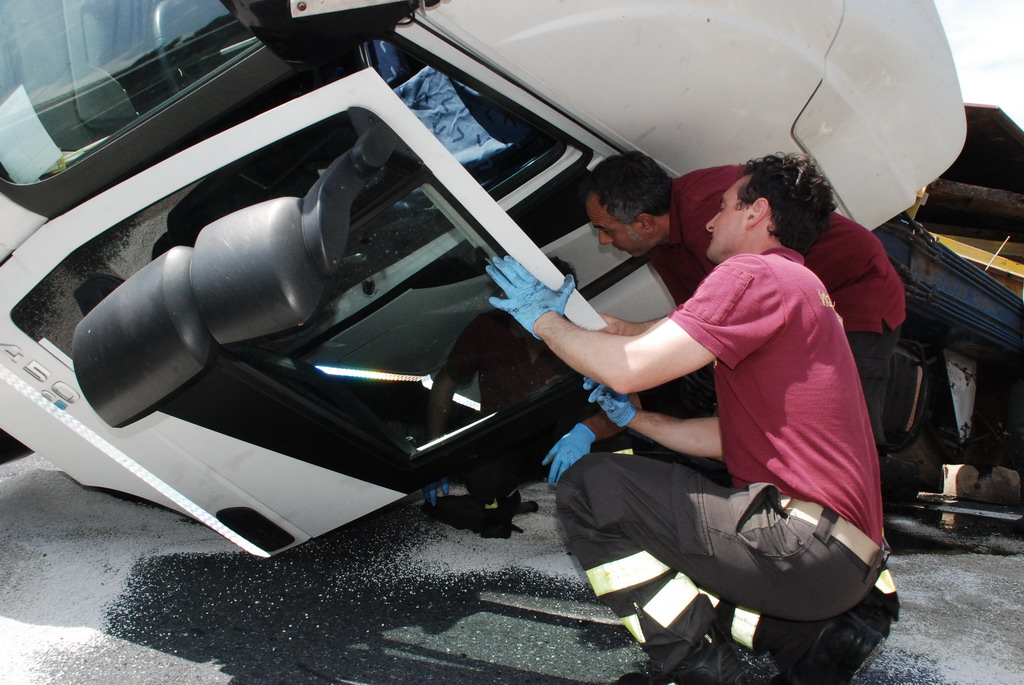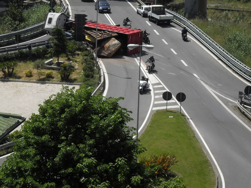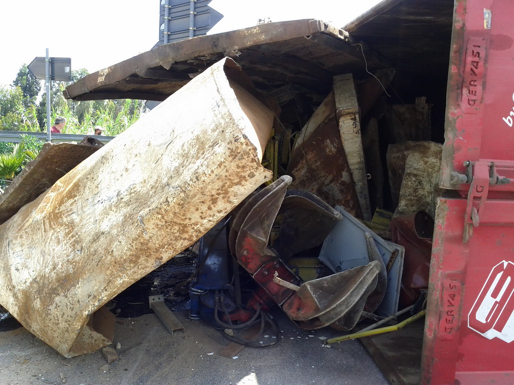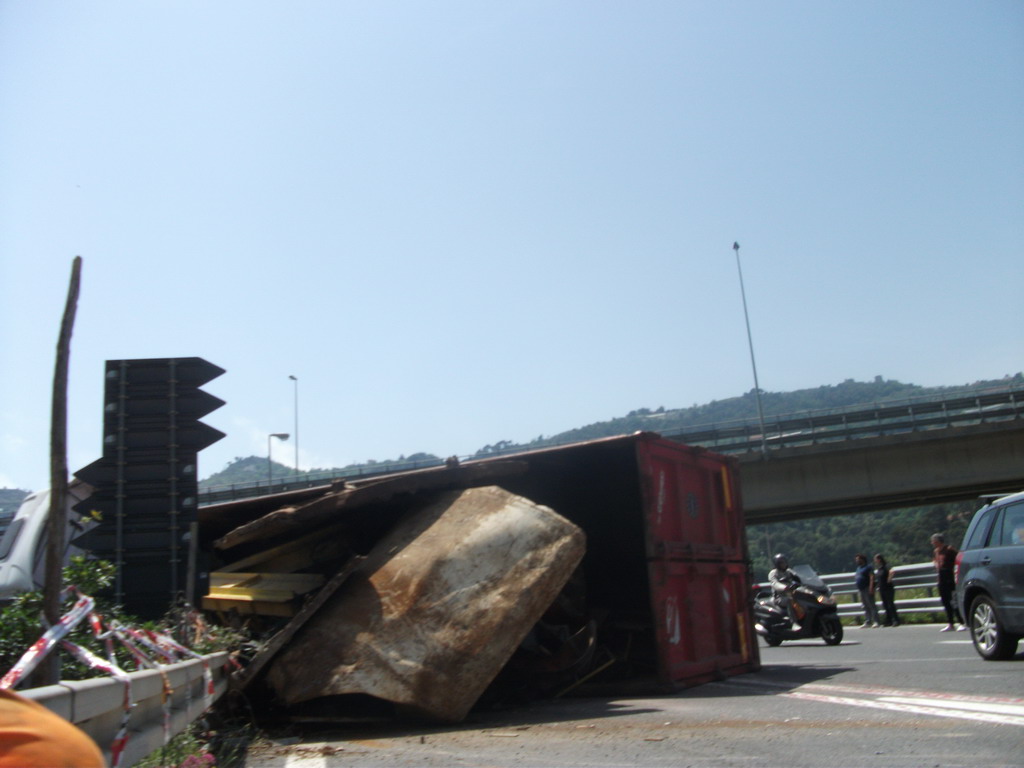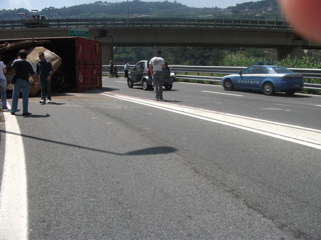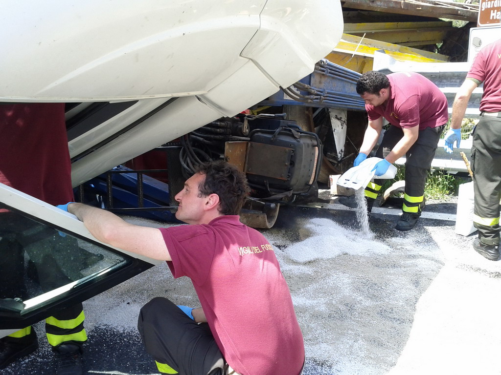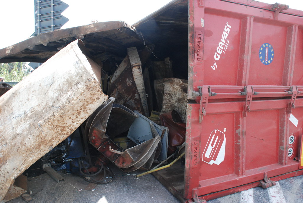 Un tir si è ribaltato intorno alle ore 13.30 a