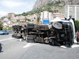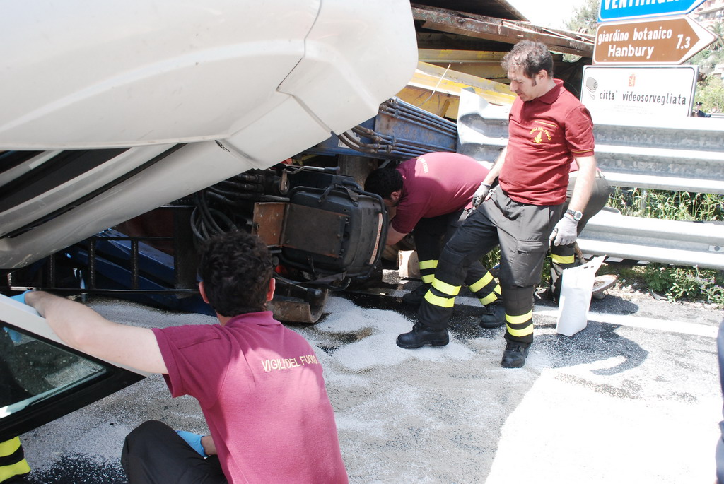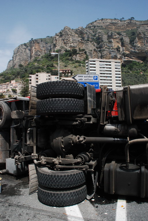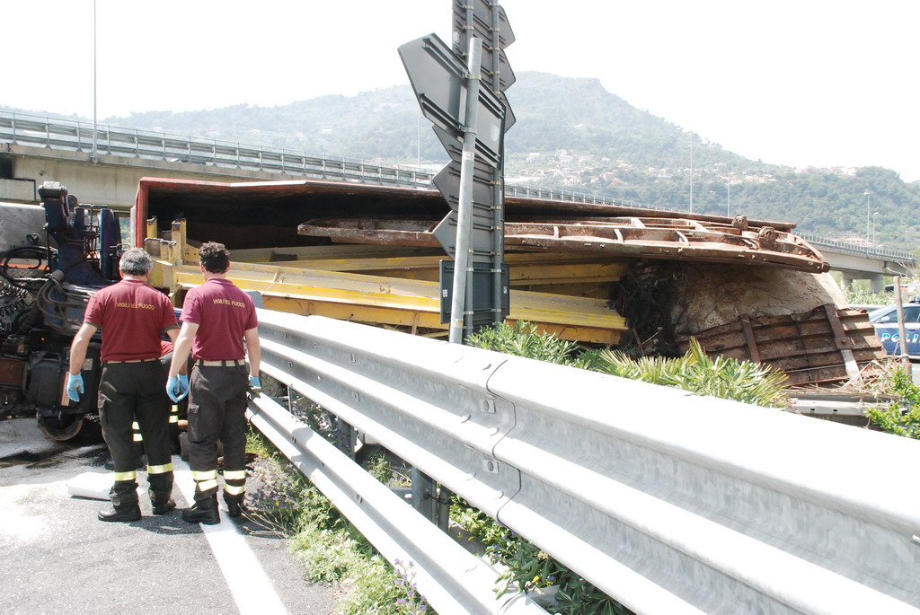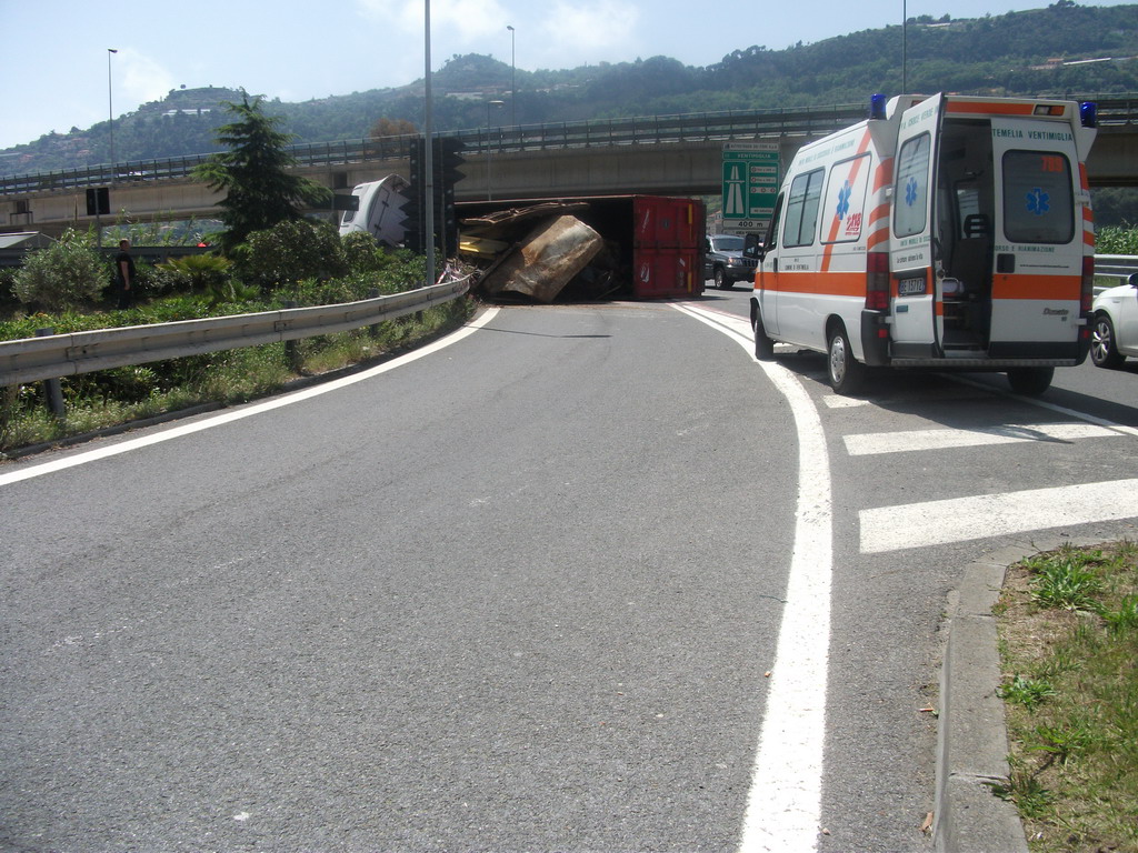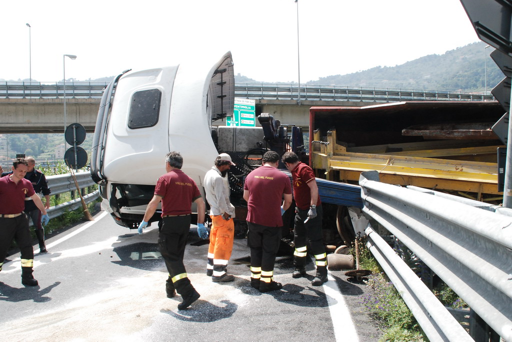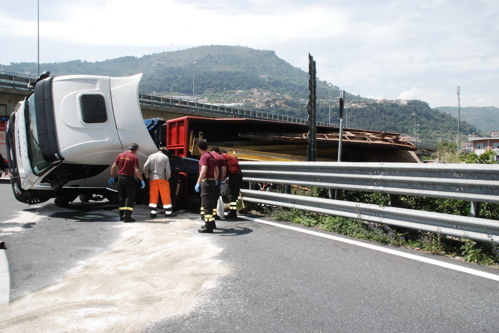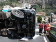 Ventimiglia: velocità troppo elevata in curva, camion si ribalta vicino a Roverino. Conducente illeso