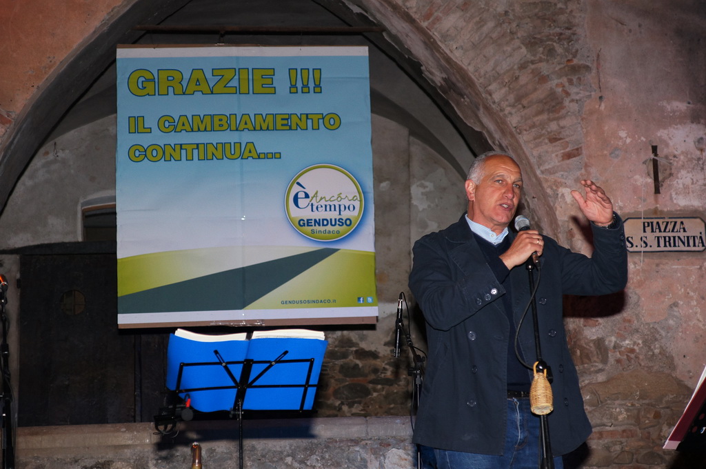 Tra i tantissimi presenti il piccolo Emanuele, che in occasione del comizio finale di una decina di giorni fa, consegnò al Sindaco Genduso tre figurine porta fortuna che - evidentemente - hanno fatto il loro dovere.