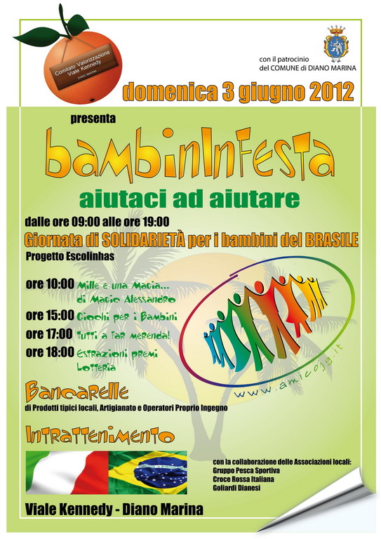 ‘BambinInfesta - Aiutaci ad aiutare’ è il titolo della manifestazione che si terrà domenica prossima (3 giugno) dalle ore 8.00 alle ore 22.00 in Viale Kennedy a Diano Marina.