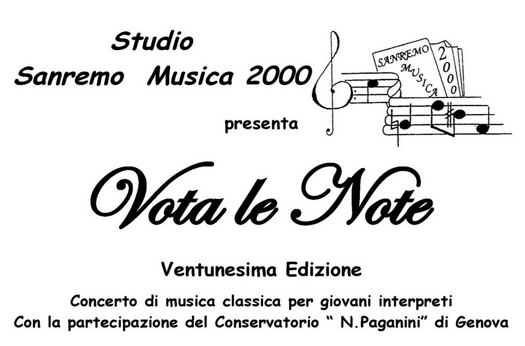 Doppio appuntamento a Bordighera con ‘Vota le Note 2012’. Lo spettacolo giunto alla sua ventunesima edizione si svolgerà in due date: domenica 3 giugno alle ore 15 e sabato 16 giugno alle 21 presso la sala del Centro Culturale " Ex Chiesa Anglicana " di Bordighera ad ingresso libero.