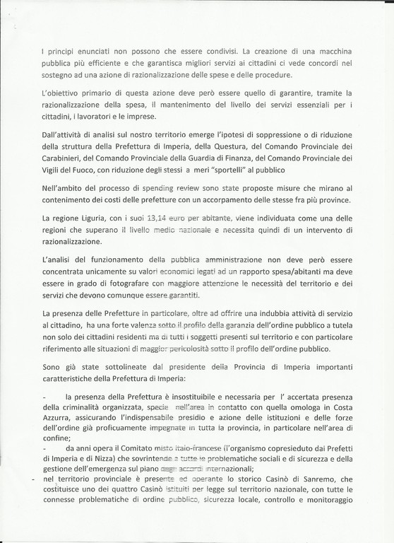 Imperia: sindacati e associazioni di categoria dicono NO all'accorpamento delle Prefetture di Imperia e Savona