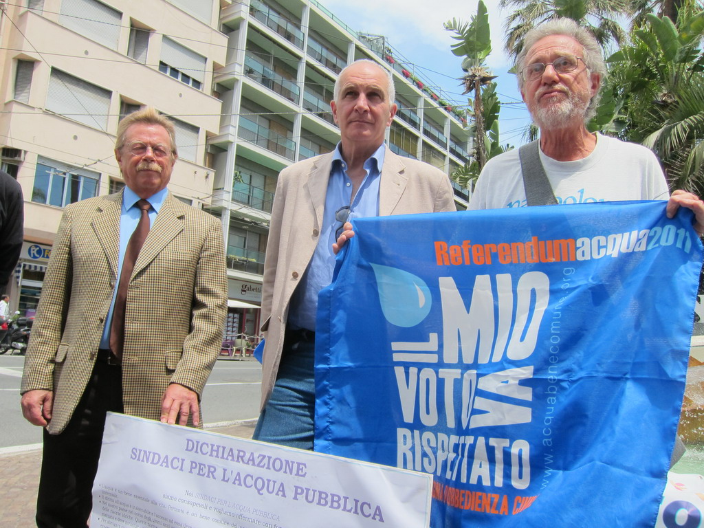 “Siamo qui perchè il 6 giugno c 'erano tutti quei Sindaci che hanno firmato per l'acqua pubblica – ha aggiunto Caniglia – oltre al fatto che qualcuno voglia mantenere le società private presenti, rischiamo anche in futuro che avvenga la remunerazione del capitale investito, cioè con il profitto per chi gestisce questo servizio. Il tutto è in totale disaccordo con il mandato referendario. Se i sindaci non rispettano le volontà dei cittadini io dico che si dimettano”. “L'Aato ha deliberato una forma di gestione in provincia di Imperia dell'acqua che sarà con una società pubblica in house – ha aggiunto il sindaco Genduso – C'è stata una proposta di deliberazione da parte di 25 comuni, sulla quale c'era accordo anche con il comune di Sanremo, di costituire questa società pubblica partendo da quelle società pubbliche già esistenti con patrimonio consolidato ed esperienza, ovvero Secom e Amaie. Ora c'è questa proposta di deliberazione di costruire una società pubblica con una società consortile nata da queste due società. Questa proposta verrà portata all'attenzione entro fine giugno nell'assemblea e si discuterà di due punti: sulla forma di gestione della società consortile pubblica e se le società private o miste hanno diritto a proseguire nella gestione dei servizi. E' un aspetto sul quale il referendum ha dato un indirizzo oltre ai pareri di organi che hanno espresso loro contrarietà su questo. Noi vorremmo che Aato deliberasse in questo senso”.
