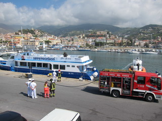 Esercitazione antincendio stamani al Porto Vecchio di Sanremo della Capitaneria di Porto. Come tradizione si è infatti svolta la simulazione semestrale di coordinamento di soccorsi in caso di allarme incendio e feriti a bordo di un'imbarcazione.
