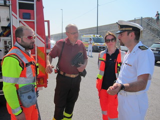 Alle 10 è scattato l'allarme incendio sulla motonave Corsara con a bordo 4 persone. Lanciato l'allarme sul posto è quindi intervenuta la motovedetta della Capitaneria di Porto seguita di mezzi dei Vigili del Fuoco e dall'arrivo di quattro ambulanze con automedica coordinate dalla centrale operativa del 118. Decine di persone in tutto coinvolte nell'esercitazione che ha quindi consentito di testare la macchina organizzativa e i tempi di intervento in caso di emergenza. Presenti anche le forze dell'ordine. La simulazione prevedeva 4 feriti, uno dei quali ustionato grave in codice rosso da trasportare in un centro specializzato via elicottero.