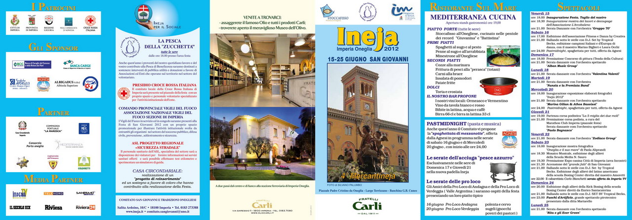 18.00-24.00. Festeggiamenti di San Giovanni con stand gastronomici ed espositivi, mostre, convegni e molto altro. Piazzale Padre Cristino e Largo Terrizzano ad Oneglia, fino al 25 giugno (cliccare QUI e QUI per leggere l’intero programma)