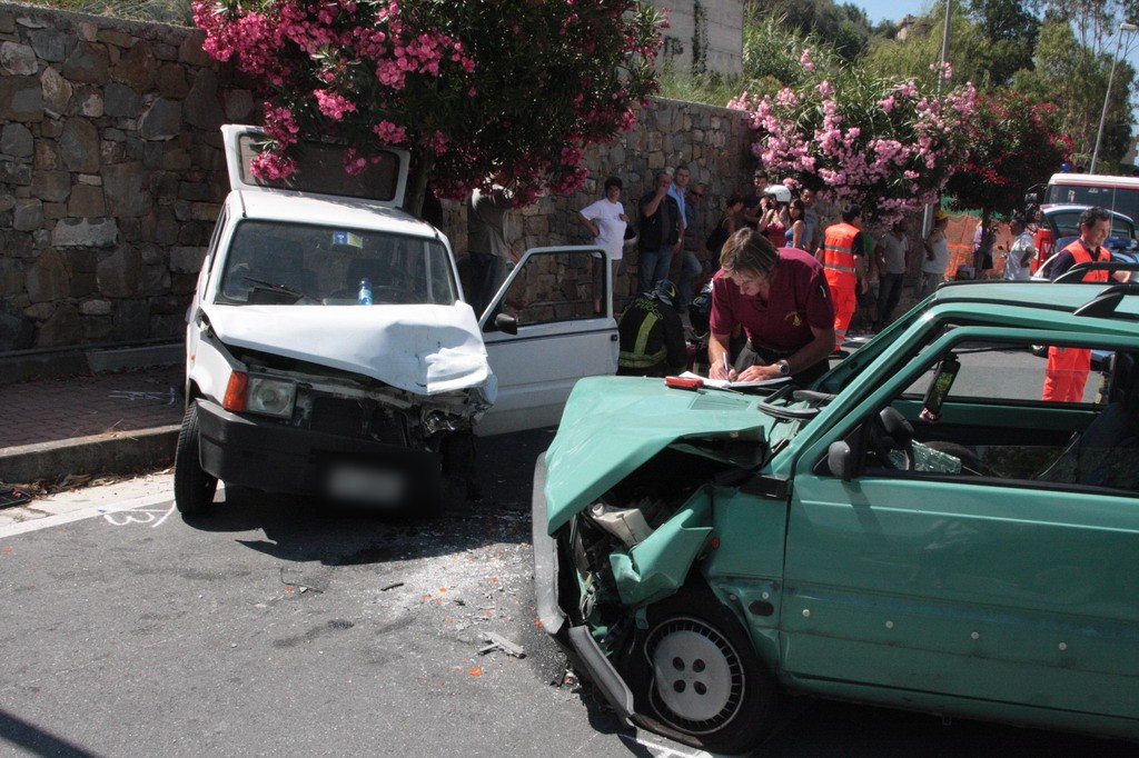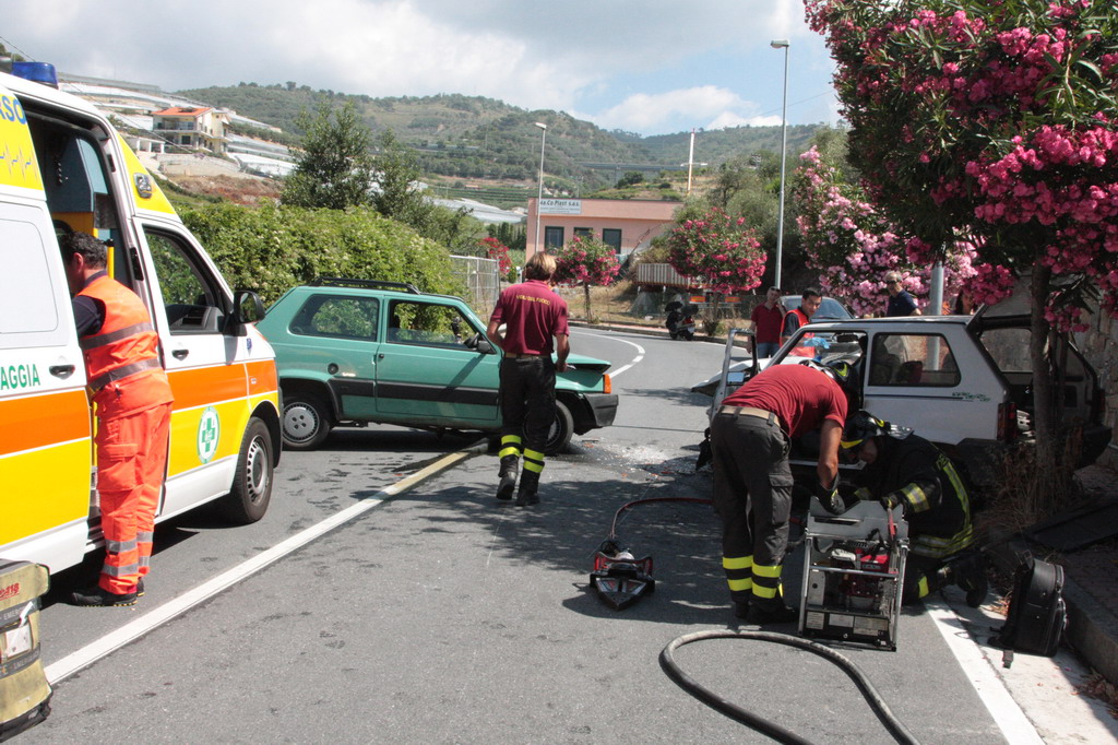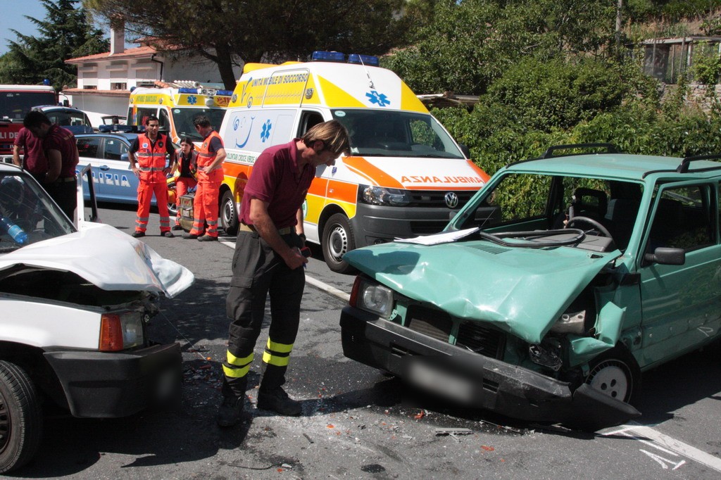 Scontro frontale tra due Fiat Panda, questa mattina poco prima delle 10.30 in via del Ponte Romano a Santo Stefano al Mare, la strada che, dall'Aurelia, porta a Terzorio.