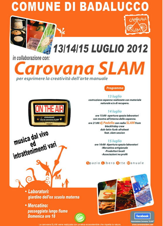 Le capanne saranno montate domani pomeriggio e, chi ha piacere, può presenziare ed aiutare gli artigiani nell’allestimento. I laboratori saranno aperti ai partecipanti dalle 15 di sabato, con mostra all’interno delle capanne. Domenica, dalle 10, riaprono i laboratori e, dalle 18 in poi, sulla passeggiata lungo fiume sarà allestito un mercatino etnico artigianale con la presenza di varie associazioni onlus che presenteranno i propri progetti. Intrattenimenti musicali e spettacoli vari durante la serata.