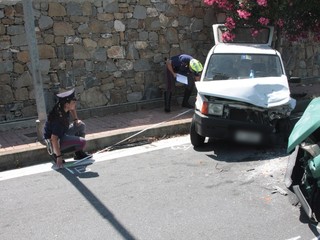 Scontro frontale tra due Fiat Panda, questa mattina poco prima delle 10.30 in via del Ponte Romano a Santo Stefano al Mare, la strada che, dall'Aurelia, porta a Terzorio.