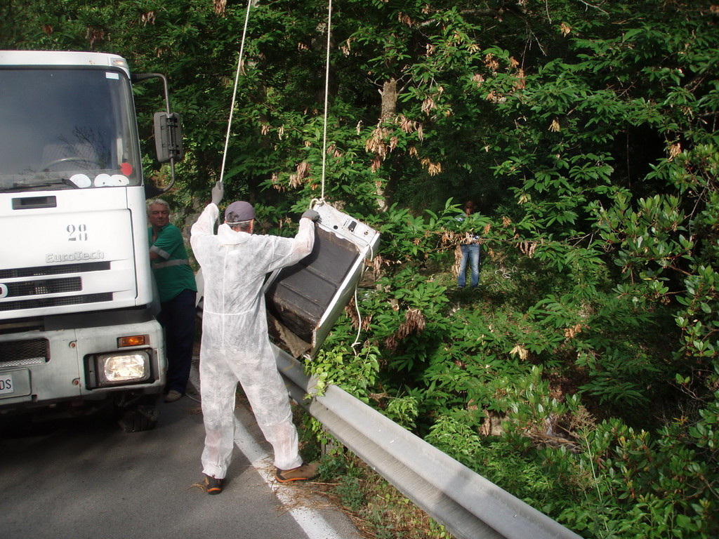 L’intervento è stato eseguito con l’ausilio della ditta specializzata abilitata all’utilizzo di sistemi di accesso e posizionamento mediante funi in siti naturali ed artificiali. Oltre al degrado ambientale, queste discariche ed il conseguente recupero, rappresentano un ingente costo economico che si ripercuote sui cittadini; è quindi necessaria la collaborazione di tutti gli utenti per arginare il fenomeno. Il Servizio Igiene Urbana giornalmente recupera decine di quintali di rifiuti ingombranti di vario tipo lasciati sul suolo pubblico nelle più disparate ore del giorno, costituiti principalmente da arredi in legno e di metallo, rifiuti elettrici, quali lavatrici, frigoriferi, televisori, ecc., inerti e rifiuti pericolosi.