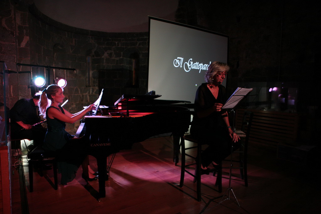 Protagonista della serata, a cui ha preso parte anche il Sindaco Gianna Spinelli per portare il suo saluto, una lettura in musica dedicata proprio al Gattopardo con Elena Zegna (voce recitante), Ubaldo Rosso (flauto) e Eliana Grasso (pianoforte). Durante lo spettacolo, apprezzato da un pubblico attento e partecipe, la lettura di alcune tra le più belle pagine del romanzo è stata alternata all’esecuzione dei brani musicali che fanno da colonna sonora al film (in allegato alcune immagini di Raffaella Sottile).