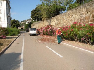 Proseguono senza sosta gli interventi di manutenzione ordinaria lungo il parco costiero del ponente ligure. I lavori, disposti dal consiglio di amministrazione di Area 24 presieduto da Giuseppe Argirò, sono scattai ormai da più di due settimane e stanno interessando i vari tratti della pista ciclopedonale. Si tratta di una gestione globale della vegetazione con la potatura delle palme, degli oleandri e degli altri alberi presenti lungo il percorso, della sistemazione delle aiuole con l'eliminazione delle erbacce e della pulizia del tracciato. I primi risultati si sono già visti con l'apprezzamento di tutti i fruitori della pista, compresi i tanti turisti che hanno scelto la riviera per le proprie vacanze estive. Il parco costiero è infatti ormai divenuto un punto essenziale nell'offerta turistica del ponente ligure.