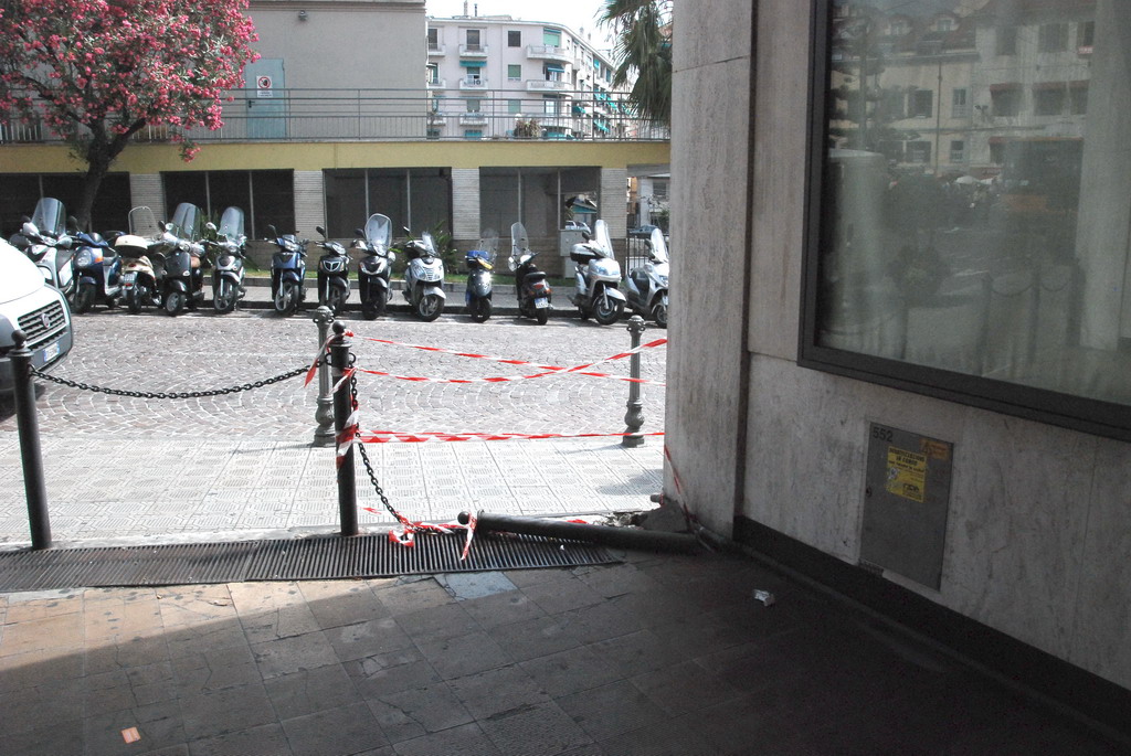 Nei giorni scorsi è stato divelto un dissuasore all'ingresso della Galleria degli Artisti che collega via Asquasciati a via Matteotti a Sanremo. L'area interessata è segnalata da un nastro ma attualmente la barra si trova ancora abbandonata a terra a lato della Galleria. Di fatto, al di là della situazione di degrado, la presenza del dissuasore a terra rappresenta un potenziale pericolo per passanti ma soprattutto per i possibili intenti di qualche facinoroso.
