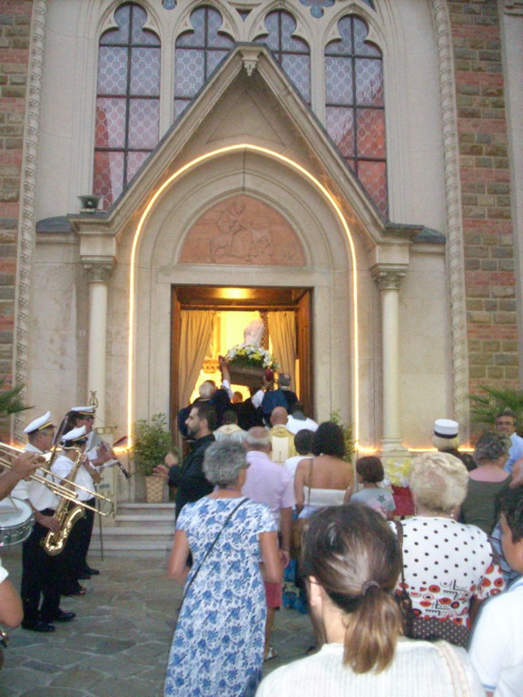 Con il tramonto che si rispecchiava sul golfo dianese e i rintocchi dei campanili vicini, si è svolta in località Lido Sant'Anna (Diano Marina) la tradizionale festa patronale in onore della Santa che tutti ricordiamo come la mamma di Nostro Signore. Quest'anno gli organizzatori hanno voluto stravolgere il consueto programma degli anni passati, facendo arrivare la statua direttamente dalle acque antistanti il Lido Sant'Anna attraverso un moscone di salvataggio messo a disposizione dai Bagni Lino.