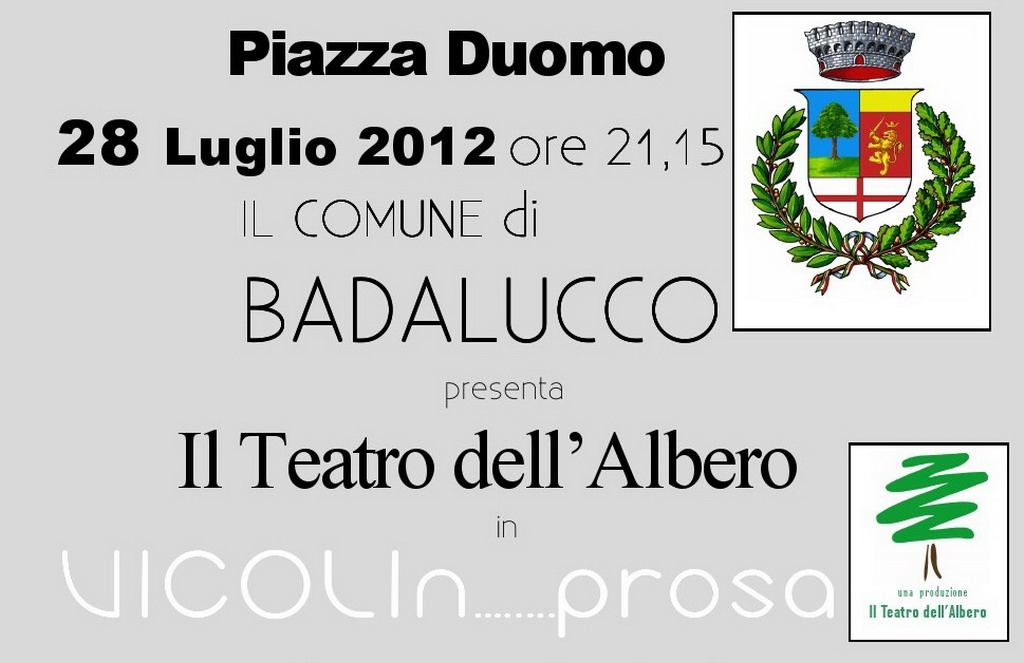 Domani, dalle 21.15, secondo appuntamento con la rassegna ‘Teatro In Piazza’, Spettacolo itinerante lungo le vie caratteristiche del centro Storico con partenza da Piazza Duomo a Badalucco. La compagnia ‘Il Teatro dell’Albero' di San Lorenzo al Mare, presenterà ‘Visioni e divagazioni’ libero adattamento e regia di Carlo Senesi.