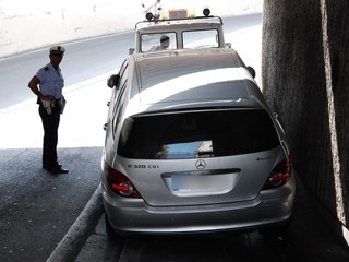 Sanremo: posteggio 'folle' di un'auto francese nel sottopasso dalle Poste. Intervento della polizia municipale