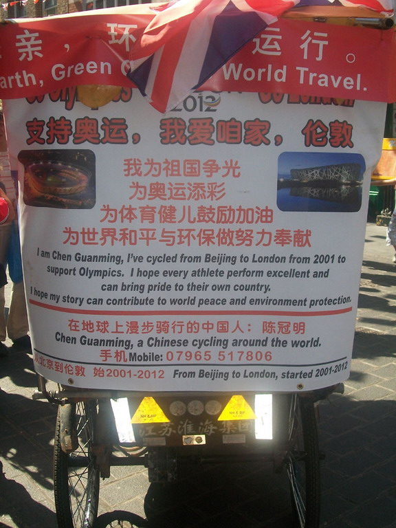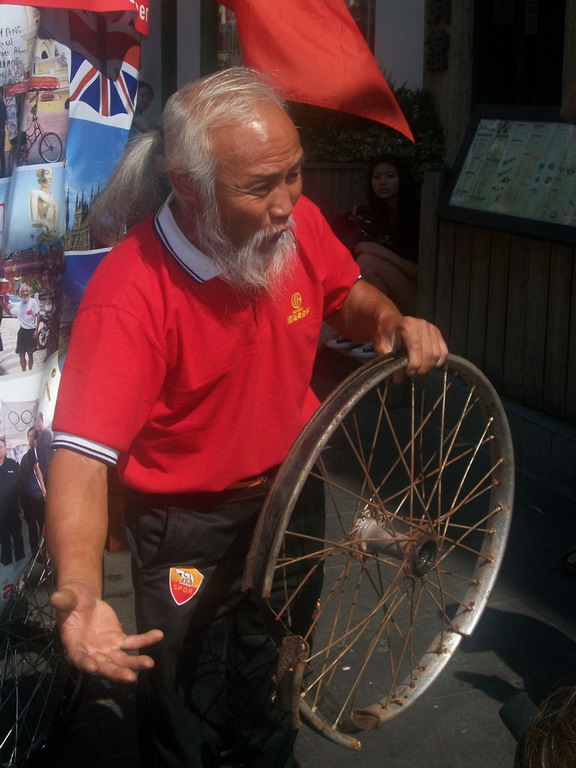 Quasi sconfinata, inoltre, la lunga galleria di figure caratteristiche, nella quale spicca Chen Guanming, il cinese che, partito dal suo paese nel 2001 con una sorta di triciclo, ha percorso 140mila chilometri (è passato anche per Roma e Genova) per portare il suo messaggio di pace fino alle Olimpiadi di Londra, dove è giunto in perfetto orario nonostante le moltissime peripezie, testimoniate, tra l’altro, dalle ruote sfondate sui sassosi percorsi d’Oriente.