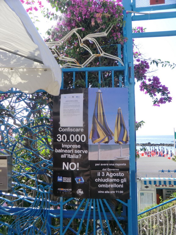 Ombrelloni chiusi fino alle 11 stamani a Sanremo e in tutta la Provincia per la protesta nazionale dei balneari contro il silenzio del Governo sulla direttiva Bolkestein e la messa all'asta degli stabilimenti dal 2015.
