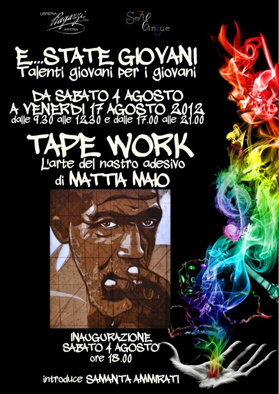 Domani, sabato 4 agosto, alle ore 18.00, presso la Libreria Ragazzi di Imperia (Via Vieusseux 14, 1° piano), si terrà l'inaugurazione della mostra Tape Work di Mattia Maio presentata dalla Prof. Samanta Ammirati.