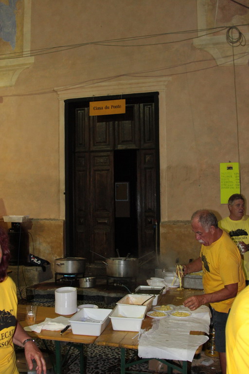 Alla modica cifra di 20 euro, la Pro Loco di Sasso, offrirà una serata unica e soprattutto la possibilità di gustare alcune pietanze locali: “u berlechin” (l'aperitivo), “pan turcu" (pane grezzo con varie salse locali), “tagliarin o pistu o sugu” (tagliolini al pesto o al sugo), “pastuteli (frittelle di verdure)”, “pan bagnau”, “bucuneti e patatine (spiedini e patatine fritte)”, “salamin in se a crisxela” (salsiccia alla griglia), “frescioi de mera, vin du postu e bibite fureste”.