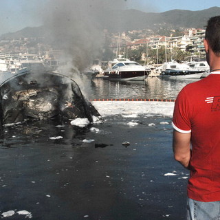 Sanremo: incendio dei due yacht stamani a Portosole, le immagini subacquee della Guardia Costiera