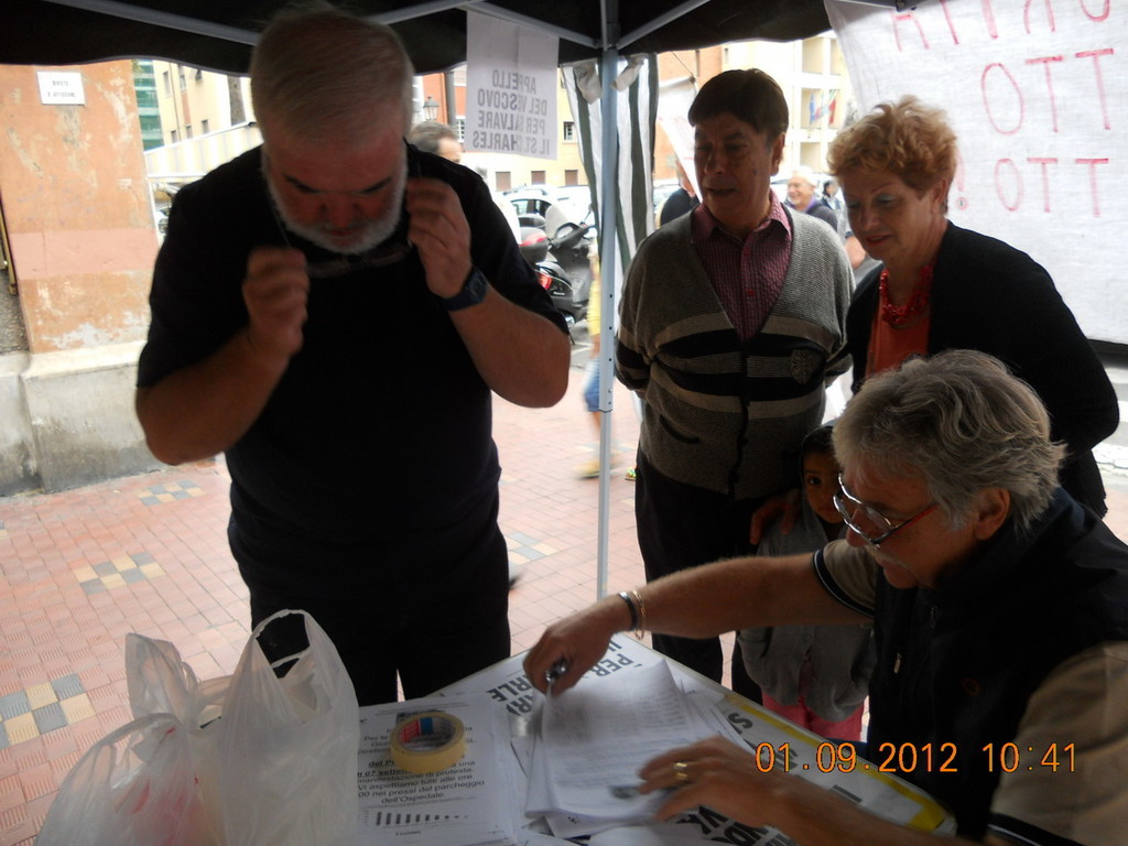 Il Comitato rammenta la manifestazione di venerdì 7, con raduno alle ore 17 nei pressi del parcheggio dell’Ospedale, dopo alle 18 presso il Cinema Teatro Don Bosco, dove insieme ai Sindaci del comprensorio si svolgerà un dibattito pubblico. Questa mattina 2 settembre, saremo con il gazebo a raccogliere le firme a Bordighera in Piazza del Popolo dalle ore 9.30 alle ore 12.00 circa.