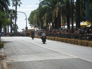 Questo pomeriggio sono in corso fino alle ore 18:00 le 10 batterie delle moto da competizione, impegnate in tre giri del mitico circuito di Ospedaletti, che misura 3380 metri.Il clou dell'evento scatterà alle ore 18:15 con la "Parata dei Campioni", a seguire l'immancabile e coreografica sfilata di fine manifestazione, dove i campioni saliranno su auto cabriolet, accompagnati da miss, effettueranno l'ultimo giro dello storico circuito per salutare i migliaia di visitatori oggi presenti ad Ospedaletti e provenienti da diverse parti dell'Italia e anche dall'estero.